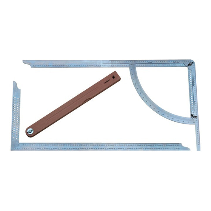 con dispositivo di marcatura Alpha Classic - acciaio inox - scale incise - angolo e quarto di cerchio saldati senza soluzione di continuità in acciaio per molle - scale in mm sulla scala e segno di svasatura con squadra da carpentiere - acciaio inox - senza soluzione di continuità - precisione dell'angolo retto 0,005 mm per cm di lunghezza della gamba con smusso in faggio da 500 mm - con foro asolato nella linguetta
