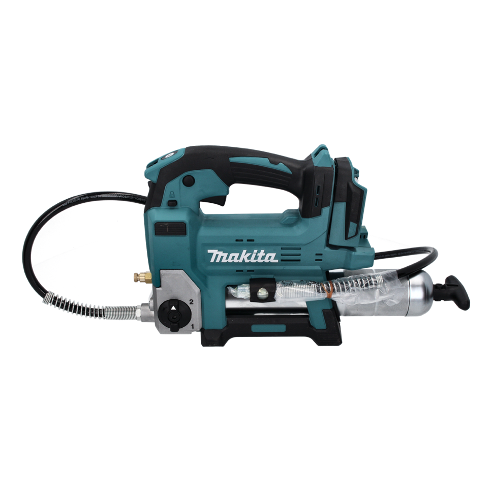 L'ingrassatore a batteria Makita DGP 180 è utilizzato per riempire facilmente i cuscinetti lubrificati tramite gli ingrassatori. Nei cantieri, nell'industria o nell'agricoltura, l'ingrassatore è versatile. Nonostante il suo design compatto, l'ingrassatore ha una pressione massima di scarico di 690 bar. Il tubo flessibile lungo 1,2 m consente di raggiungere facilmente anche gli ingrassatori di difficile accesso. La velocità di spremitura può essere regolata in due fasi, 145 o 290 ml al minuto. Nel secondo stadio, la velocità di spremitura viene regolata automaticamente in base alla contropressione. La modalità di commutazione automatica facilita l'uso dell'ingrassatore. L'interruttore on/off bloccabile garantisce un elevato livello di comfort durante le operazioni più lunghe. Makita è un produttore leader di utensili elettrici, caratterizzato da una lunga tradizione e da una lavorazione di alta qualità.