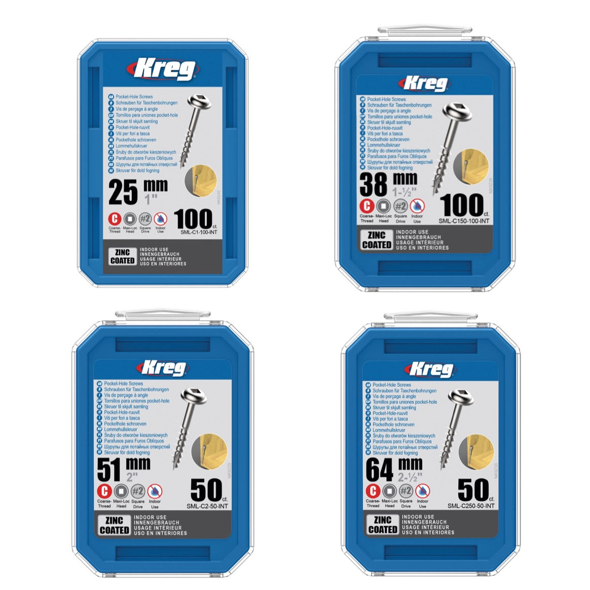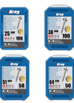 KREG Viti a testa bombata con foro tascabile SML-C Starter Set 300 pz. per uso interno Attacco quadro Filettatura parziale Filettatura grossa Autofilettante zincata