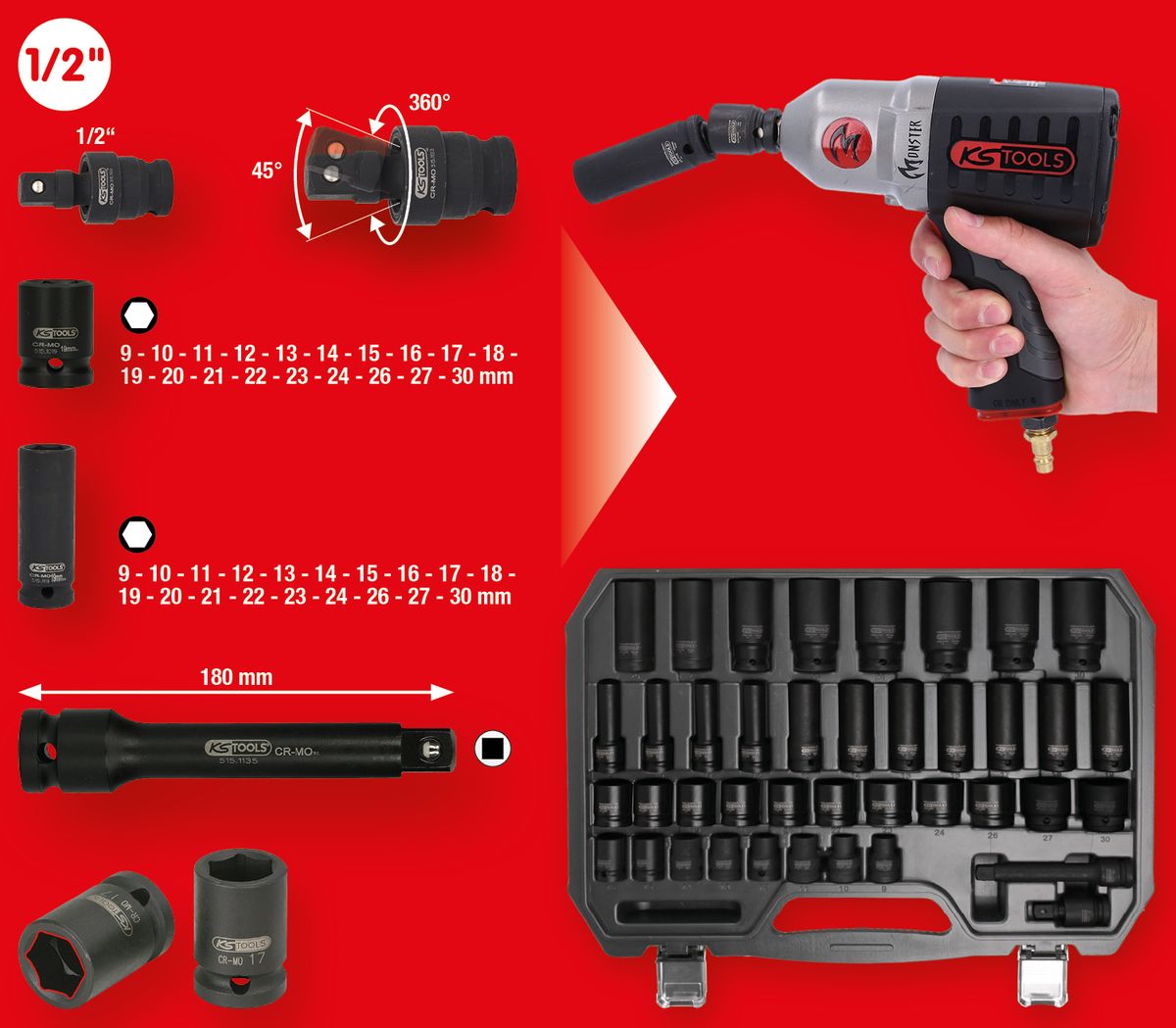 KS TOOLS 1/2' Serie di bussole esagonali p.avvitatori ad impulsi, 40pz ( 515.0065 )