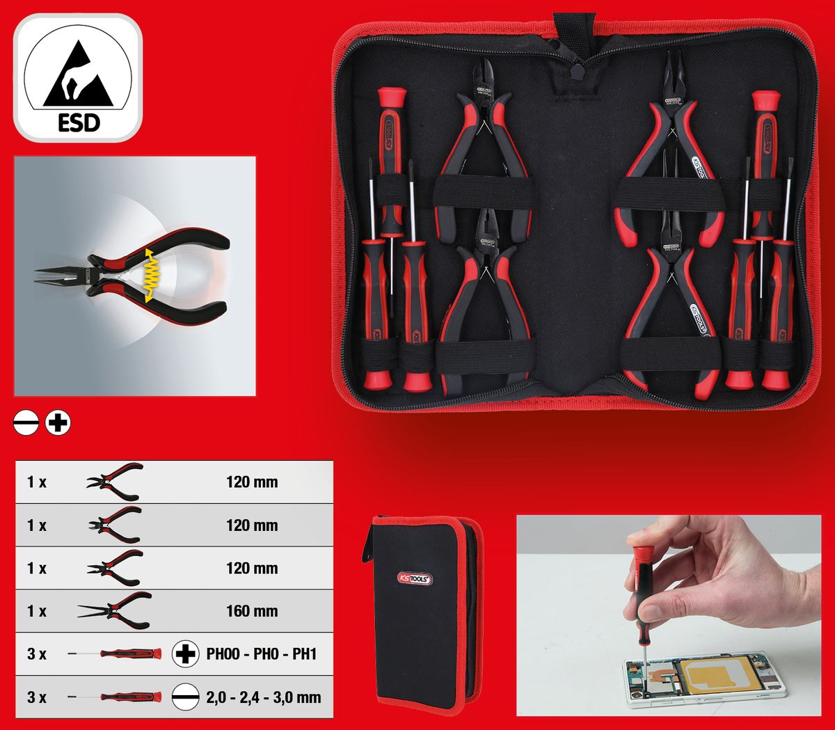KS TOOLS Serie di utensili di precisione ESD,10 pz ( 500.7220 )