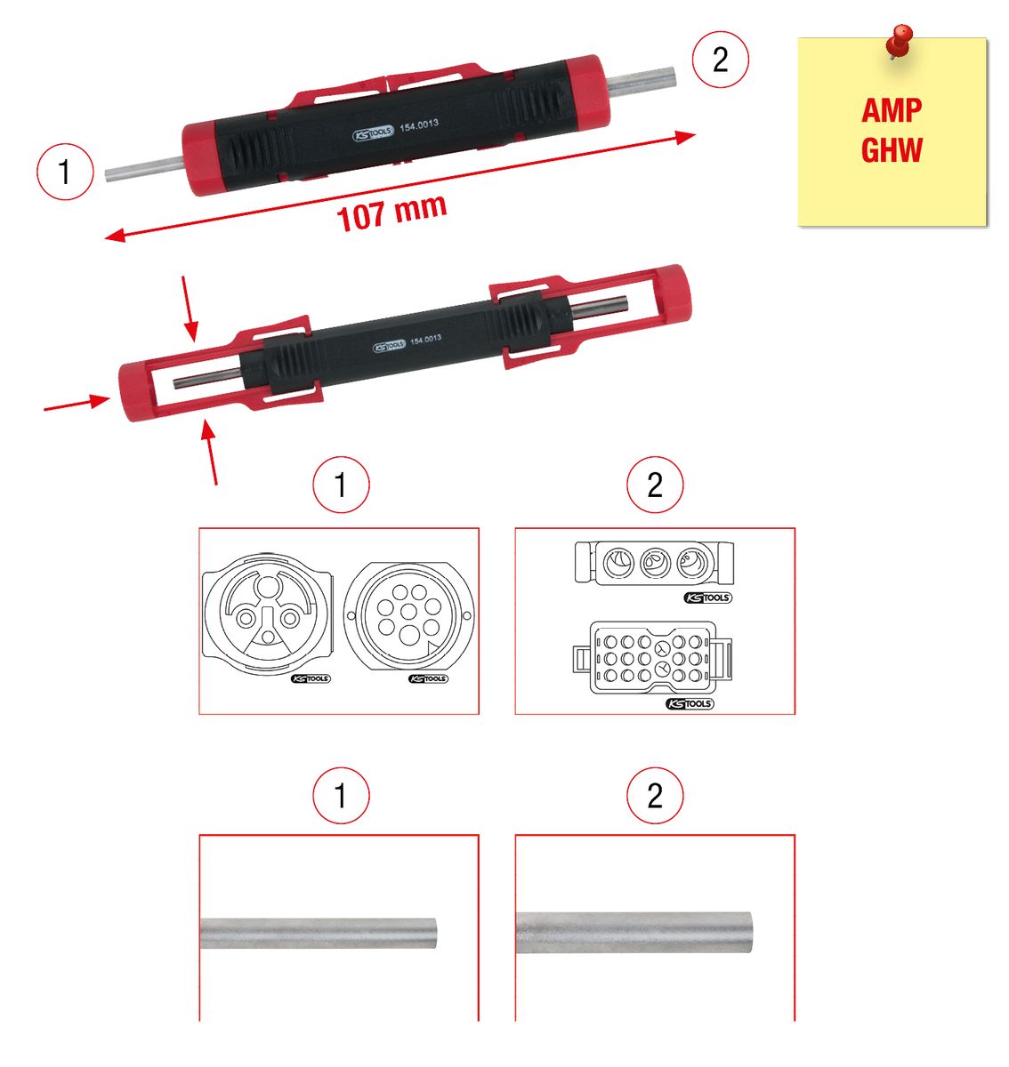 KS TOOLS Utensile universale di sblocco cavi per spine e boccole rotonde, 1,5 / 3,5 mm ( 154.0013 )