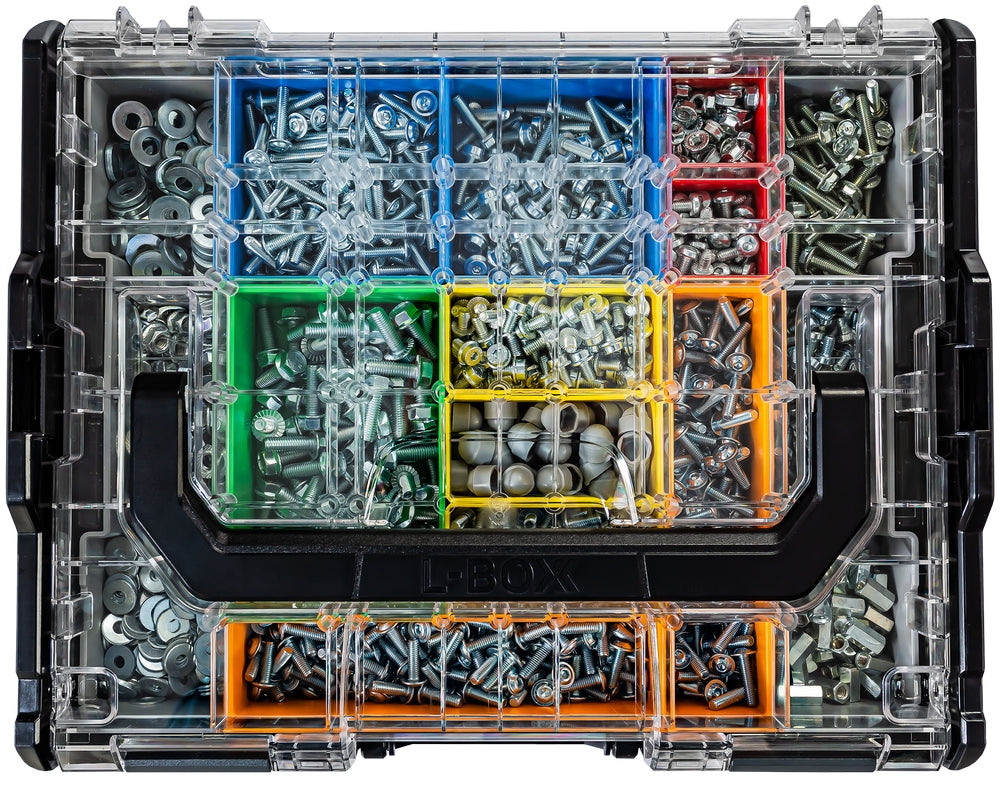 L-BOXX 102: Die L-BOXX 102 überzeugt durch ihren transparenten Deckel, der Ihnen jederzeit einen klaren Blick auf den Inhalt ermöglicht, ohne den Deckel öffnen zu müssen. Sie ist mit dem gesamten L-BOXX System kompatibel und dank ihres robusten Klickmechanismus und des Tragegriffs können Sie bis zu 25 kg einzeln und 40 kg im Verbund transportieren. Die L-BOXX 102 ist speziell dafür konzipiert, mit den Insetboxen und Kleinteileeinsätzen eine rutschfeste und sichere Passform zu bieten, sodass selbst feinste Kleinteile wie Schrauben und Dübel ordentlich und getrennt bleiben.