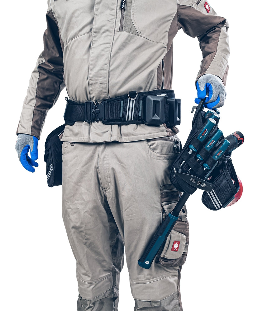 Il Set Falegname M offre una soluzione completa e pratica per gli artigiani e gli appassionati di bricolage che desiderano organizzare in modo efficiente i propri utensili e le piccole parti e tenerli facilmente accessibili. Questo set comprende la cintura portautensili ProClick M, il portamartello ProClick S, l'astuccio per chiodi ProClick M e il supporto ProClick. Cintura portautensili ProClick M: una cintura ergonomica imbottita, regolabile in continuo e perfettamente adattabile alle diverse corporature. La pratica chiusura a sgancio rapido, azionabile con una sola mano, e la comoda imbottitura rendono la cintura ideale per un comfort duraturo. ProClick Hammer Holder S: questo portamartello appositamente progettato non solo offre un posto sicuro per il martello, ma è anche dotato di passanti aggiuntivi per le penne e della possibilità di agganciare un moschettone. Il martello è quindi sempre a portata di mano e viene trasportato in modo sicuro sul corpo. ProClick Nail Pouch M: una spaziosa custodia per chiodi, viti e altri piccoli oggetti, dotata di una tasca con coulisse per evitare che il contenuto cada. È inoltre dotato di passanti elastici per ulteriori utensili e può essere facilmente agganciato a una cintura o a una fondina utilizzando la ClickUnit. Supporto ProClick: Il componente centrale del sistema, che consente di fissare le borse alla cintura in modo rapido e sicuro. Il semplice meccanismo a scatto consente di passare rapidamente da un compito all'altro e garantisce un lavoro efficiente senza interruzioni. Il set combina funzionalità e robustezza e offre una soluzione professionale per trasportare e accedere rapidamente a strumenti e materiali. È ideale per i professionisti che necessitano di una soluzione mobile e flessibile per riporre i propri utensili e aumentare l'efficienza e la produttività.