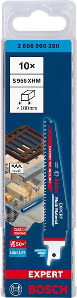 Tecnologia al carburo di Bosch per il taglio duraturo di materiali da costruzione resistenti - taglia metallo, legno, plastica, materiali compositi ed elementi prefabbricati utilizzati nei cantieri - passo dei denti progressivo per tagliare materiali sottili e spessi allo stesso modo - adatto a tutte le seghe alternative con attacco a S