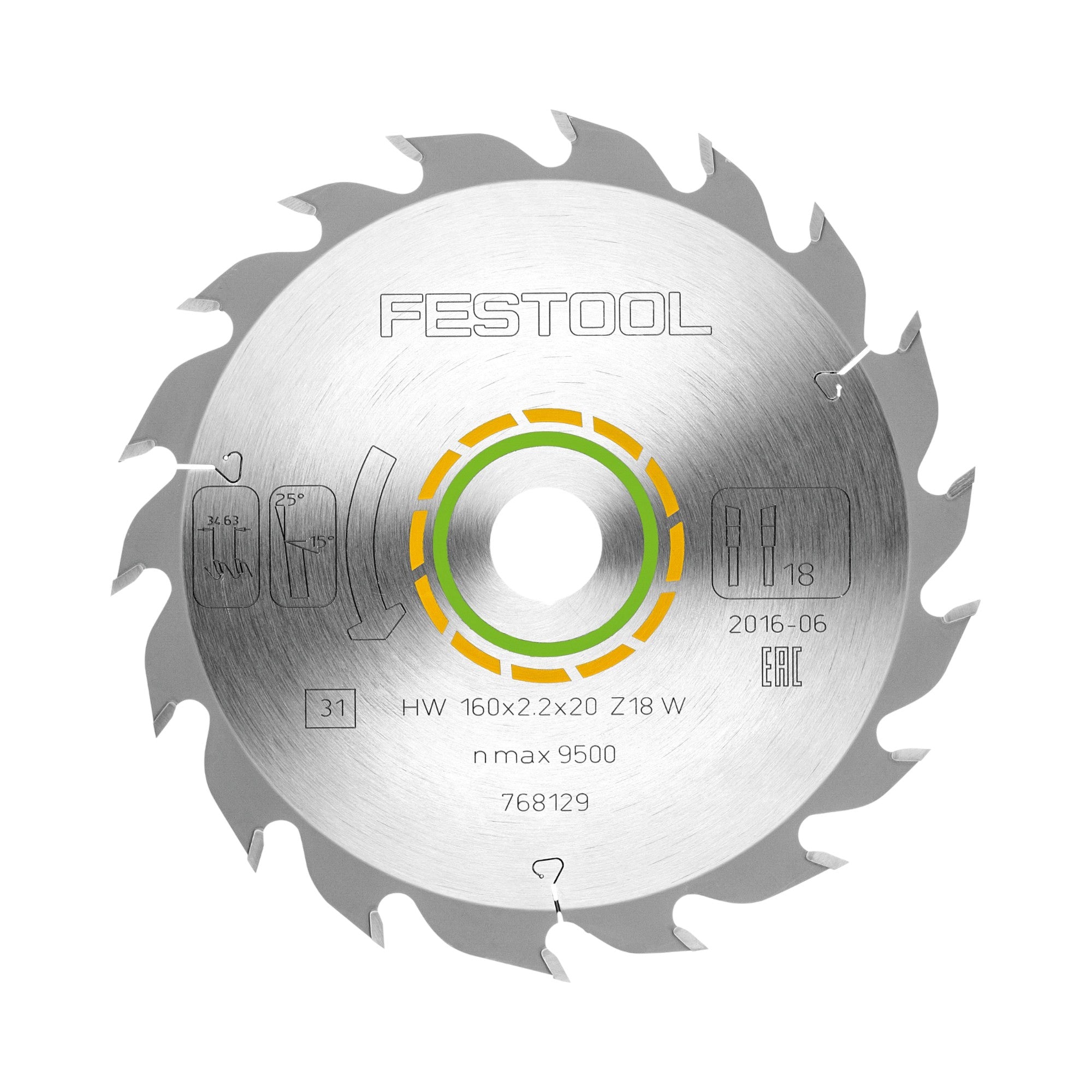 Lama circolare Festool HW 160x2.2x20 W18 LEGNO STANDARD ( 768129 ) 160 x 2,2 x 20 mm 18 denti per tutti i materiali a base di legno, legno massiccio, cartongesso