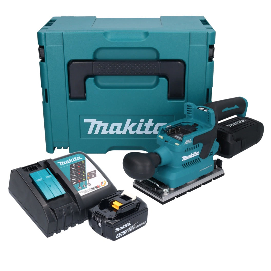 Makita DBO 381 RM1JU 18 V 93 x 185 mm Vibrofinitrice a batteria senza spazzole + 1x batteria 4,0 Ah + caricabatterie + Makpac