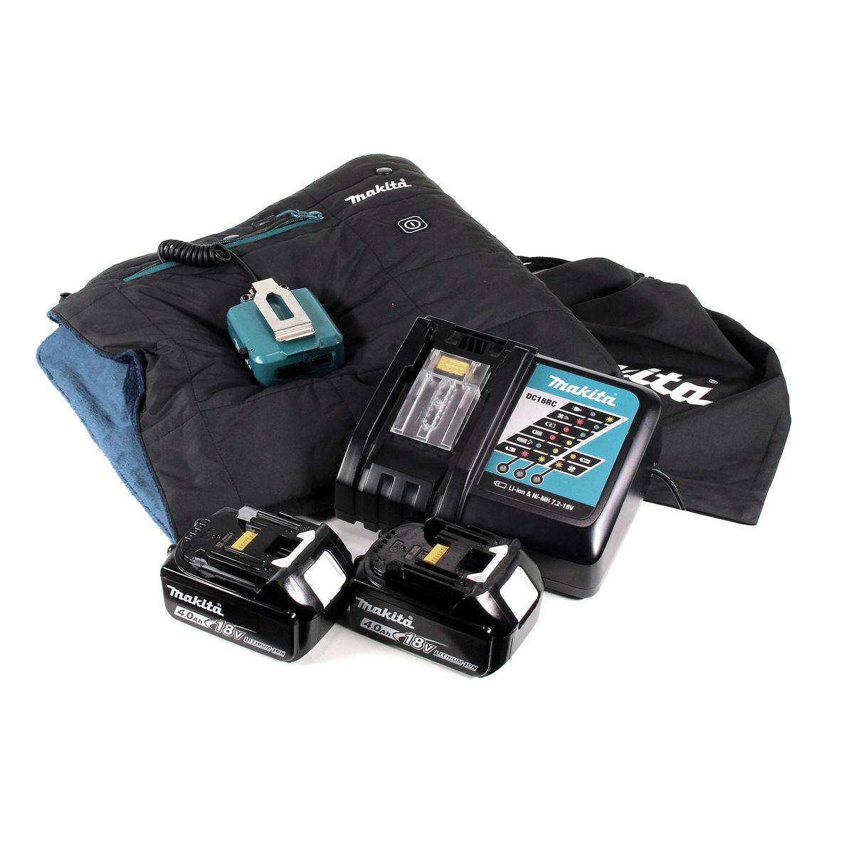 Makita DCB 200 RMA Heizdecke 14,4V - 18V 3 Heizstufen USB Anschluss + 2x Akku 4,0Ah + Ladegerät
