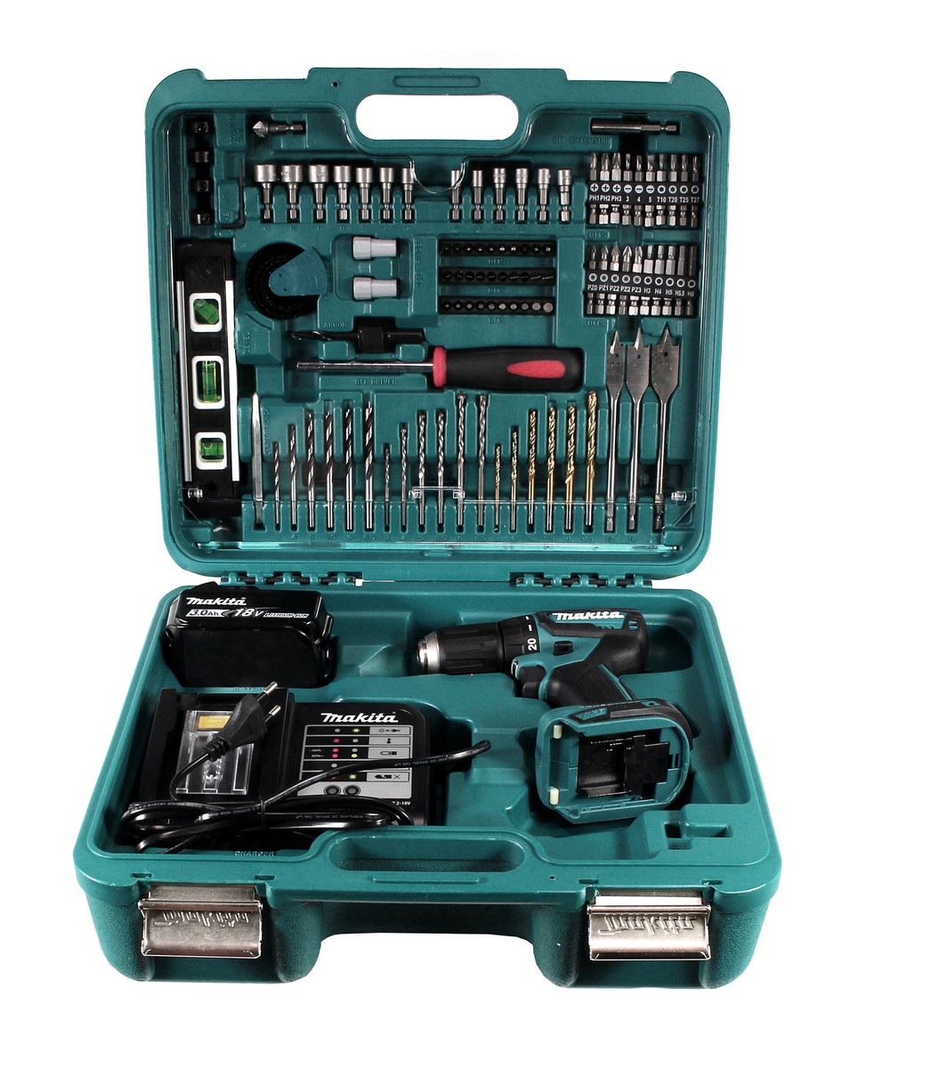 Makita DDF 483 SFTK Akku Bohrschrauber 18V 40Nm + 3,0 Ah Akku + Ladegerät + 101 tlg. Werkzeugset im Koffer