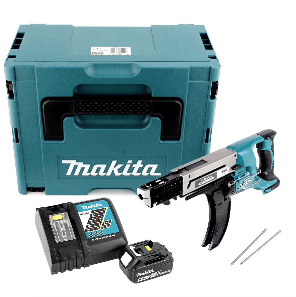 Makita DFR 750 RT1J Avvitatore a batteria con alimentatore automatico 18V 45-75mm + 1x Batteria 5,0Ah + Caricabatterie + Valigetta Makpac