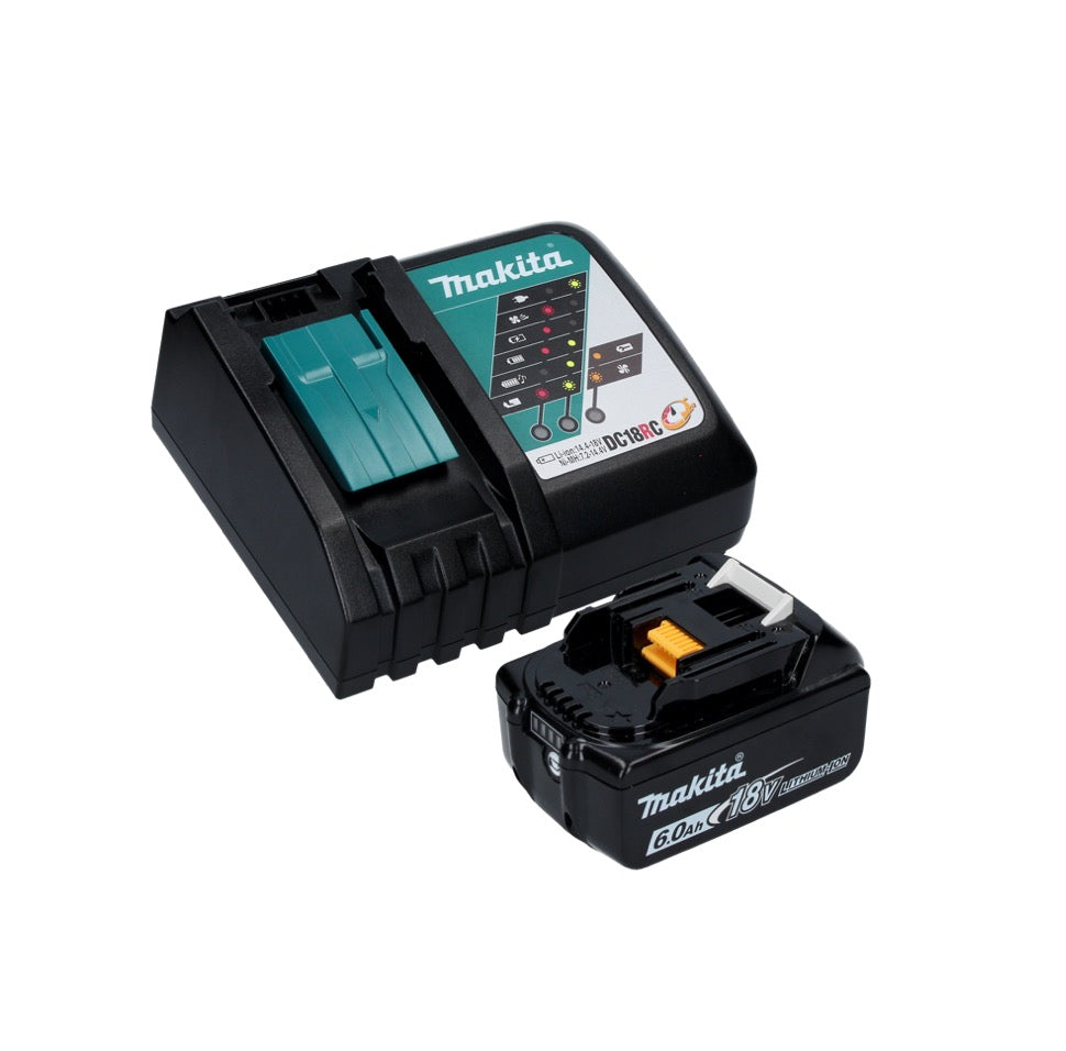 Makita DGA 506 RG1J Smerigliatrice angolare a batteria 18V 125mm Brushless + 1x Batteria 6,0 Ah + Caricabatterie + Valigetta Makpac