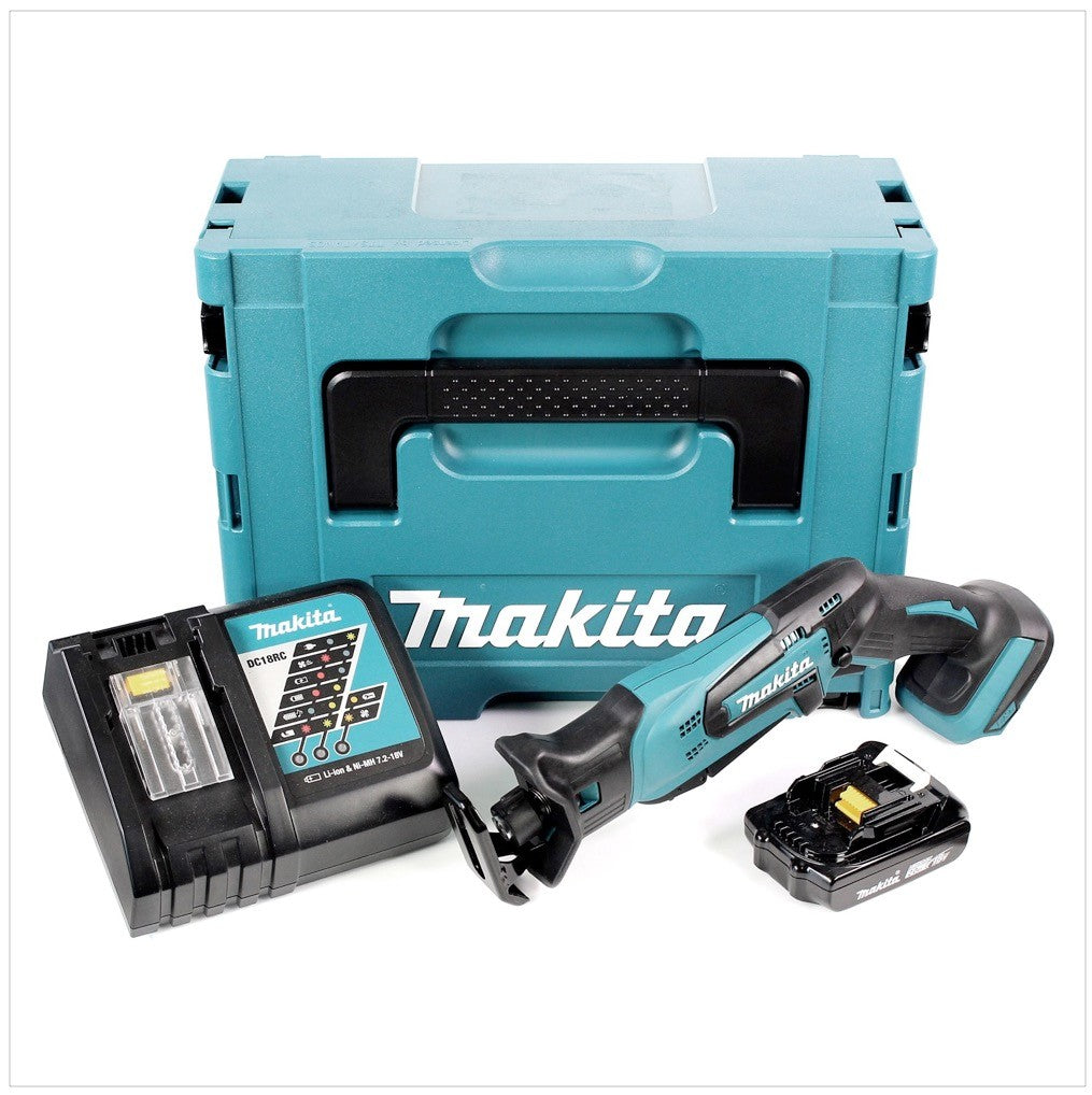 Makita DJR 183 RA1J Seghetto diritto a batteria 18V in valigetta Makpac + 1x Batteria 2,0 Ah + 1x Caricabatterie