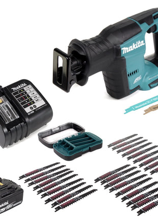 Makita DJR 188 Akku Reciprosäge 18 V Brushless Säbelsäge + 1x 4,0 Ah Akku + Ladegerät + 27 tlg. Sägeblatt-Set