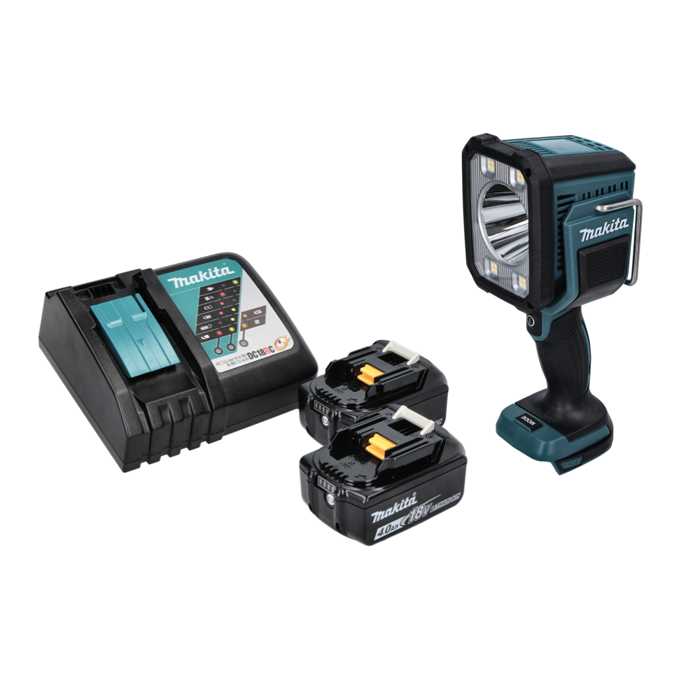 Il DML 812 di Makita è un proiettore portatile ricaricabile estremamente potente con una portata massima di 640 metri. Dispone di 4 diverse modalità: luce principale (600 lm), luce di inondazione (1000 lm), luce principale e di inondazione (1250 lm) e luce lampeggiante (1200 lm). Può funzionare con una batteria da 14,4 V o con una batteria da 18 V. La testa della lampada può essere spostata di 90° e, grazie al gancio sulla testa, il faretto può essere fissato a vari punti (travi, impalcature o tubi). L'impugnatura incassata garantisce una presa sicura e confortevole. La protezione integrata contro le scariche profonde spegne automaticamente il dispositivo prima che la batteria sia quasi scarica, aumentando così la durata della batteria. Grazie al design robusto e alla tecnologia XPT (Xtreme Protection Technology), l'utensile è protetto in modo ottimale da polvere e spruzzi d'acqua, anche in condizioni difficili. Makita è un produttore leader di elettroutensili; l'alta qualità della lavorazione e l'ampio programma da 18 V sono tra i marchi di fabbrica dell'azienda.