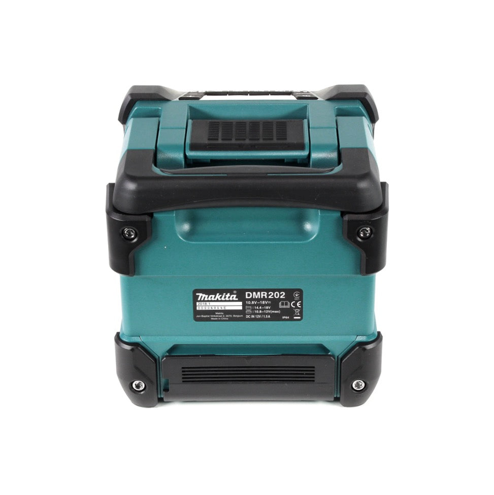 Makita DMR 202 RF altoparlante da cantiere 18V - per funzionamento a batteria e a rete, con funzione Bluetooth, connessione AUX, porta USB, display LCD + 2 batterie da 3,0 Ah + caricabatterie