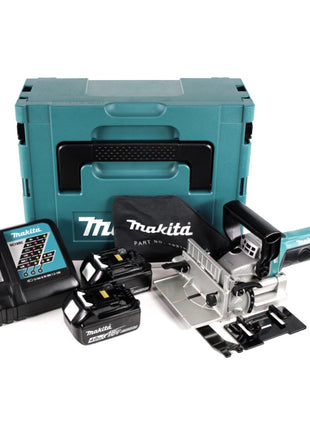 Makita DPJ 180 RMJ Fresatrice intestatrice a batteria 18 V + 2 x Batterie 4,0 Ah + Caricabatterie + Valigetta Makpac