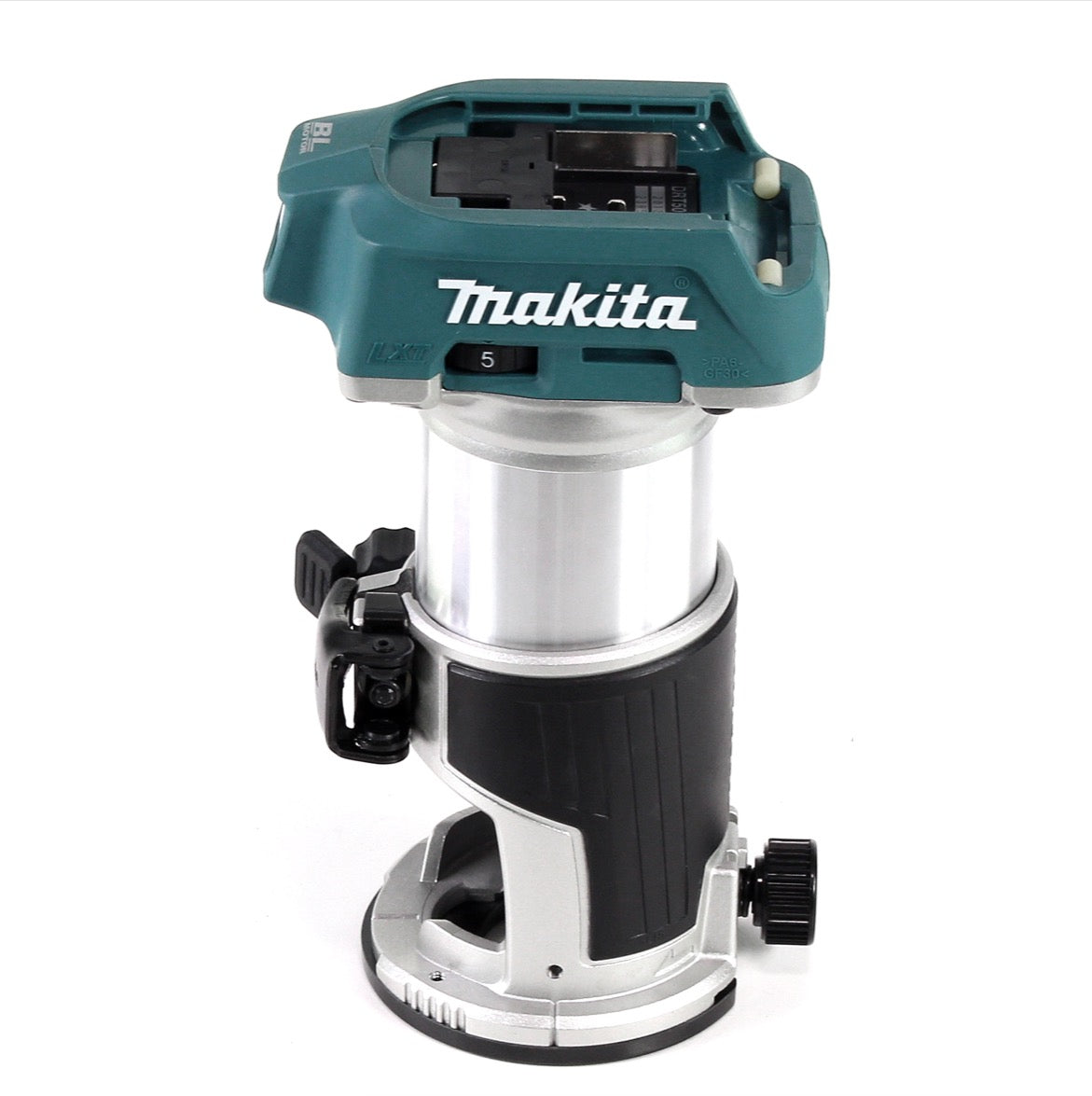 Grazie al modulo per frese per bordi incluso, è ideale per la fresatura a filo e la tornitura di profili in legno, plastica e materiali simili. La Makita DRT 50 è una fresatrice multifunzione compatta e maneggevole. L'apparecchio convince per la funzione soft-start, che consente un avvio controllato, e per i livelli di velocità variabili, impostabili tramite un comando rotativo. Il motore brushless garantisce un utilizzo più efficiente della capacità della batteria e aumenta il tempo di funzionamento e la durata del dispositivo. La fresa è dotata di un attacco per il montaggio di un aspirapolvere. La batteria da 6,0 Ah offre alla classe 18 volt una capacità di carica ancora maggiore con i consueti tempi di ricarica ridotti. Oltre a una maggiore durata, la batteria viene fornita di serie con un pratico indicatore di capacità. Il caricabatterie DC18RC ricarica le batterie in modo delicato ma efficace per il lavoro successivo in un tempo di ricarica estremamente ridotto. La valigetta, costituita da profili angolari a doppia parete e da superfici rinforzate del coperchio, dei lati e della base, protegge in modo affidabile le macchine e gli accessori.