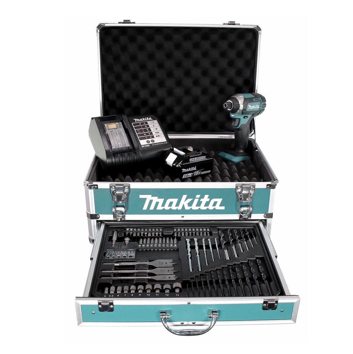 Makita DTD 152 SFX4 Akku Schlagschrauber 18V 165Nm 1/4" + 1x Akku 3,0Ah + Ladegerät + 70tlg. Bit Bohrer Set + Koffer