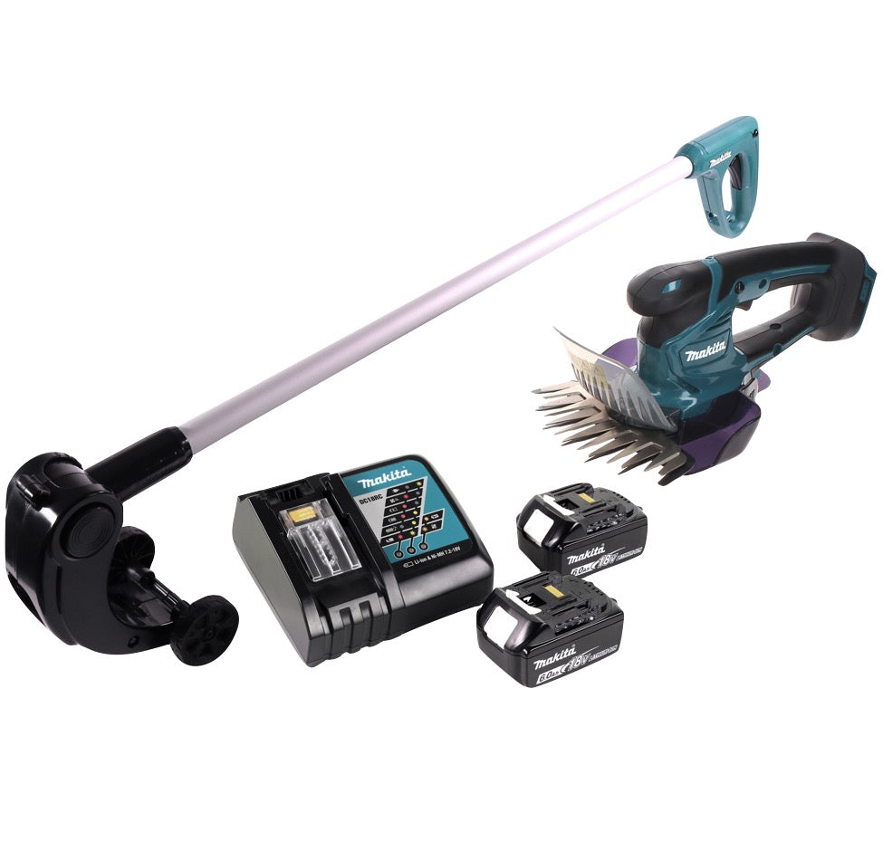 Makita DUM 604 RG Akku Grasschere 18 V + Griffverlängerung mit Rolle + 2x Akku 6,0 Ah + Ladegerät
