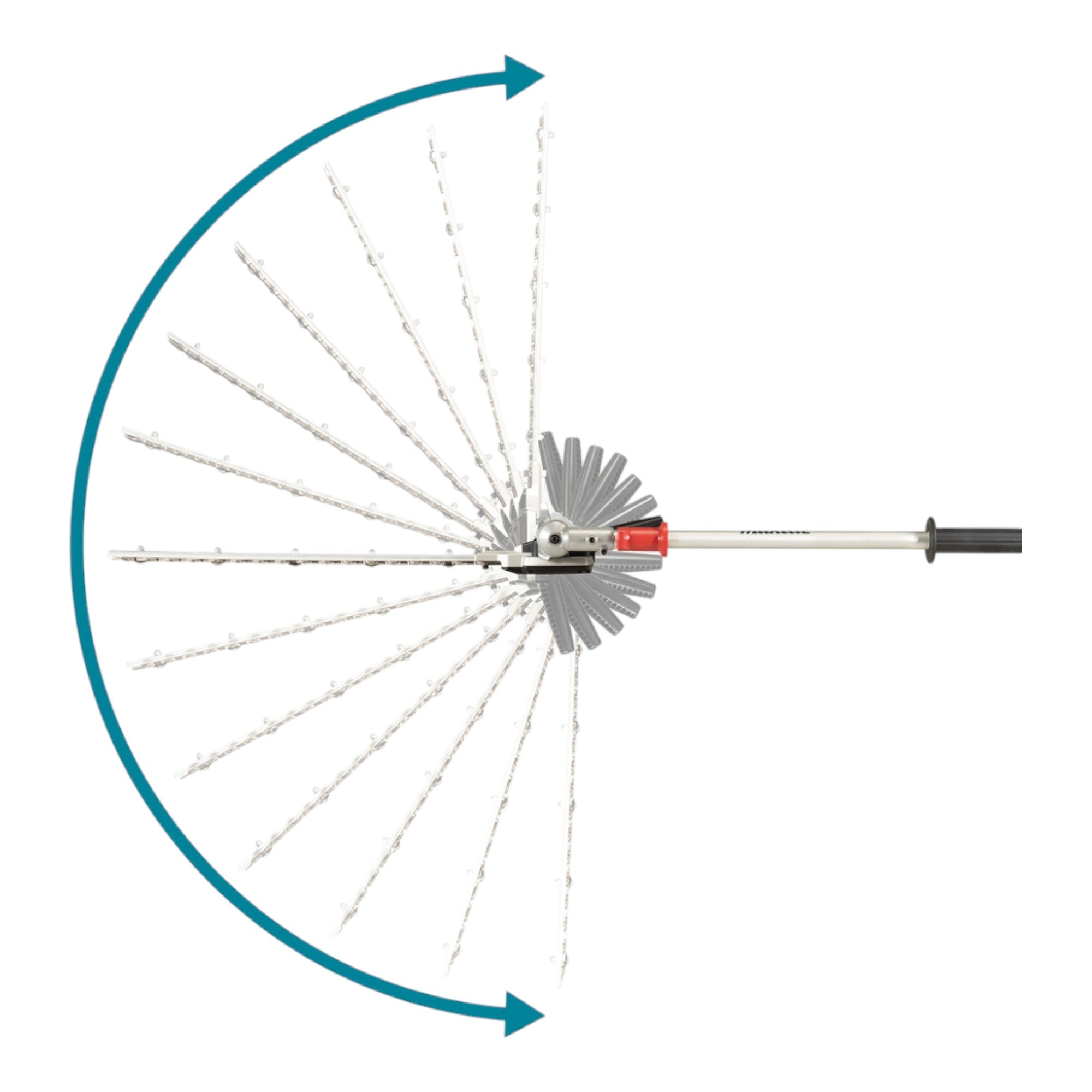 L'accessorio per tagliasiepi Makita EN 402 MP è la soluzione ideale per tagliare le siepi alte e garantisce la massima flessibilità nella manutenzione del giardino. Grazie alla barra della lama regolabile, che può essere inclinata di 90° verso l'alto e verso il basso in 13 fasi, consente tagli precisi e confortevoli, anche in aree difficili da raggiungere. Questo accessorio robusto e potente consente di lavorare facilmente a diverse altezze e angolazioni senza bisogno di una scala. Perfetto per i giardinieri professionisti e gli appassionati di bricolage esigenti che apprezzano l'efficienza e l'ergonomia del lavoro.
