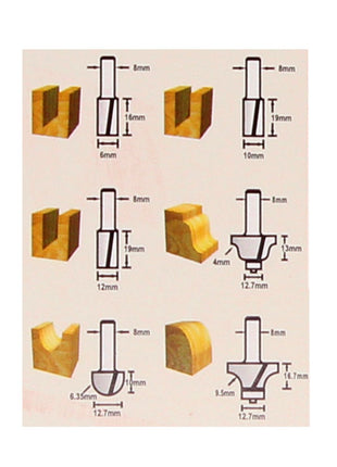 Makita Set di frese 8mm ( D-53540 ) per legno - 6 pz.