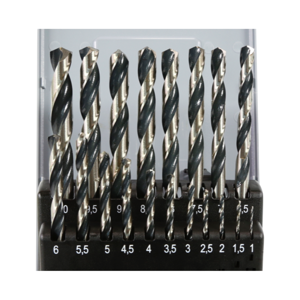 - 19x Bosch HSS Bohrer ( 1 / 1,5 / 2 / 2,5 / 3 / 3,5 / 4 / 4,5 / 5 / 5,5 / 6 / 6,5 / 7 / 7,5 / 8 / 8,5 / 9 / 9,5 / 10 mm )