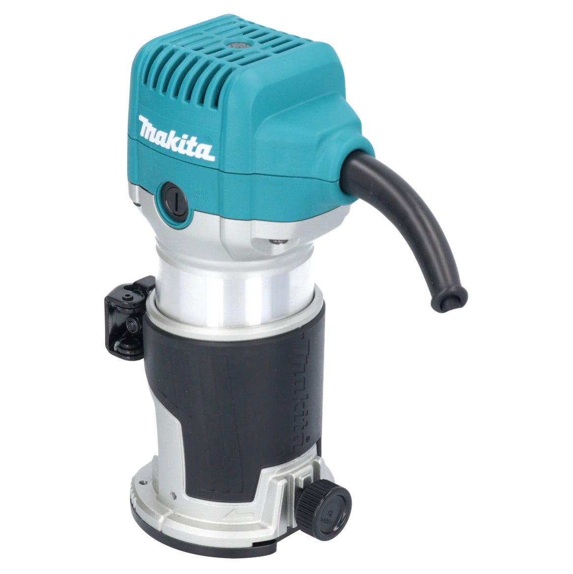 L'RT 0702 C è una comoda fresa ad una mano di Makita che può essere utilizzata per tagliare varie scanalature o motivi decorativi nel legno. È dotata di un sistema di sgancio rapido per una comoda regolazione della profondità e per rimuovere e installare la base. Il controllo elettronico della velocità mantiene costante la velocità sotto carico. È possibile un collegamento per l'aspirazione della polvere. La luce LED integrata consente di avere sempre una visione ottimale del pezzo da lavorare. La macchina è dotata di una protezione contro il riavvio per evitare che la macchina si avvii involontariamente dopo un'interruzione di corrente. La macchina dispone inoltre di un avviamento graduale, di un'elettronica costante e di un robusto alloggiamento in alluminio. Makita è un produttore leader di utensili elettrici di tutti i tipi, caratterizzato soprattutto da una lunga tradizione e da una lavorazione di alta qualità.