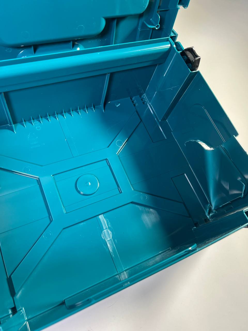 Il sistema MAKPAC di Makita è il modo migliore per mantenere gli utensili e gli accessori a portata di mano e sicuri. Le valigiette possono anche essere facilmente impilate, agganciate e trasportate. La valigetta MAKPAC Makita è costruita con profili angolari a doppia parete e superfici superiori, laterali e inferiori rinforzate. Inoltre, gli angoli arrotondati sulla struttura e sull'impugnatura migliorano il comfort dell'utente durante il trasporto.
