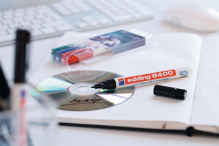 per l'etichettatura permanente di CD, DVD e dischi Blu-ray - inchiostro pigmentato permanente a base d'acqua per proteggere lo strato di supporto dati - resistente alla luce - a prova di sbavature - con punta rotonda morbida