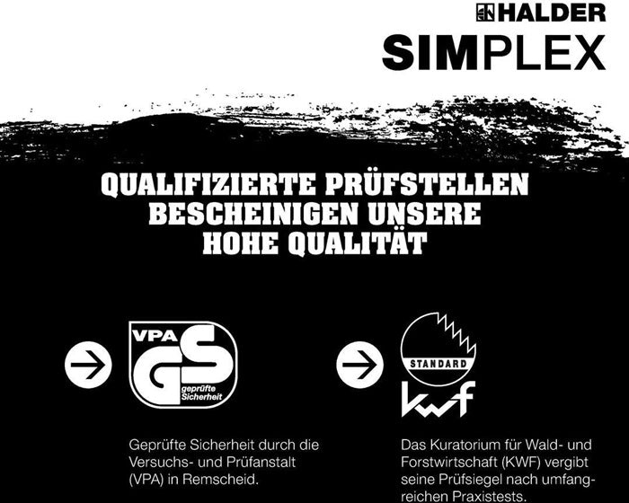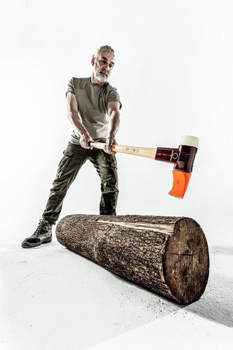 Il martello spaccalegna SIMPLEX di Halder combina due utensili in uno: un martello spaccalegna e una mazza a faccia morbida di assoluta qualità professionale e offre quindi un notevole risparmio rispetto all'acquisto separato. L'alta qualità del prodotto è certificata dal Consiglio di Amministrazione per i lavori forestali e la tecnologia (KWF). L'inserto di spacco, forgiato in acciaio al carbonio di alta qualità, garantisce un ottimo effetto di spacco grazie alla sua punta reversibile. A ciò si aggiunge un peso totale di 4.100 g e un'elevata pesantezza superiore. L'inserto in superplastica con D60 mm è un inserto in plastica di media durezza realizzato in materiale estruso, estremamente omogeneo. Rispetto agli inserti in plastica stampati a iniezione, è quindi molto più resistente all'usura e durevole. Utilizzando questo lato protettivo per la lavorazione dei cunei, si evita completamente il rischio di lesioni dovute a schegge di metallo - i cunei in plastica e alluminio hanno una durata molto più lunga. L'alloggiamento in ghisa malleabile è dotato di un manicotto di protezione dell'impugnatura integrato, che garantisce un'elevata resistenza alla rottura. Il manico in hickory a fibra lunga e molto robusto è laccato e di forma ergonomica. La protezione da taglio in pelle protegge dalle ferite durante il trasporto. Secondo l'intelligente principio SIMPLEX, tutti i componenti sono intercambiabili e possono essere adattati. In questo modo non solo si risparmia denaro, ma anche risorse. Caratteristiche del prodotto: 2 utensili in 1: martello da spacco e mazza a faccia morbida - un notevole risparmio rispetto all'acquisto separato. L'inserto di spaccatura forgiato in acciaio al carbonio di alta qualità garantisce un ottimo effetto di spaccatura grazie alla sua punta reversibile. Nessun rischio di lesioni da schegge metalliche durante il lavoro di spaccatura grazie all'inserto in plastica super in D60mm (bianco - mediamente duro - molto resistente). Durata notevolmente superiore dei cunei in plastica e alluminio. Guida delicata dei pali di legno. Alloggiamento in ghisa malleabile con manicotto di protezione dell'impugnatura integrato ed elevata resistenza alla rottura. Impugnatura in hickory a fibra lunga e molto robusta, laccata e di forma ergonomica. Tutte le parti sono sostituibili / retrofittabili - quindi molto economiche e a basso consumo di risorse. Inclusa la protezione da taglio in pelle. 4.100 g di peso totale. Campi di applicazione Raccolta manuale motorizzata del legname - azionamento sicuro e delicato di cunei in acciaio con inserto protettivo - spaccatura di legname lungo un metro - lavoro con cunei nell'abbattimento - azionamento delicato di pali in legno - giardinaggio/paesaggistica Materiale Impugnatura Inserto d'impatto in Hickory 1 inserto di spaccatura in acciaio al carbonio di alta qualità - forgiato a freddo e temprato - con punta reversibile incl. manicotto in plastica incl. protezione da taglio in pelle. Manicotto in plastica incl. protezione da taglio in pelle Inserto a percussione 2 Superplastica - bianco di media durezza molto resistente all'usura Corpo in ghisa malleabile Montaggio Nel martello demolitore SIMPLEX può essere montato solo l'inserto in superplastica 3207.060. L'inserto per spacco 3210.160 può essere montato solo nell'alloggiamento in ghisa malleabile 3011.160!