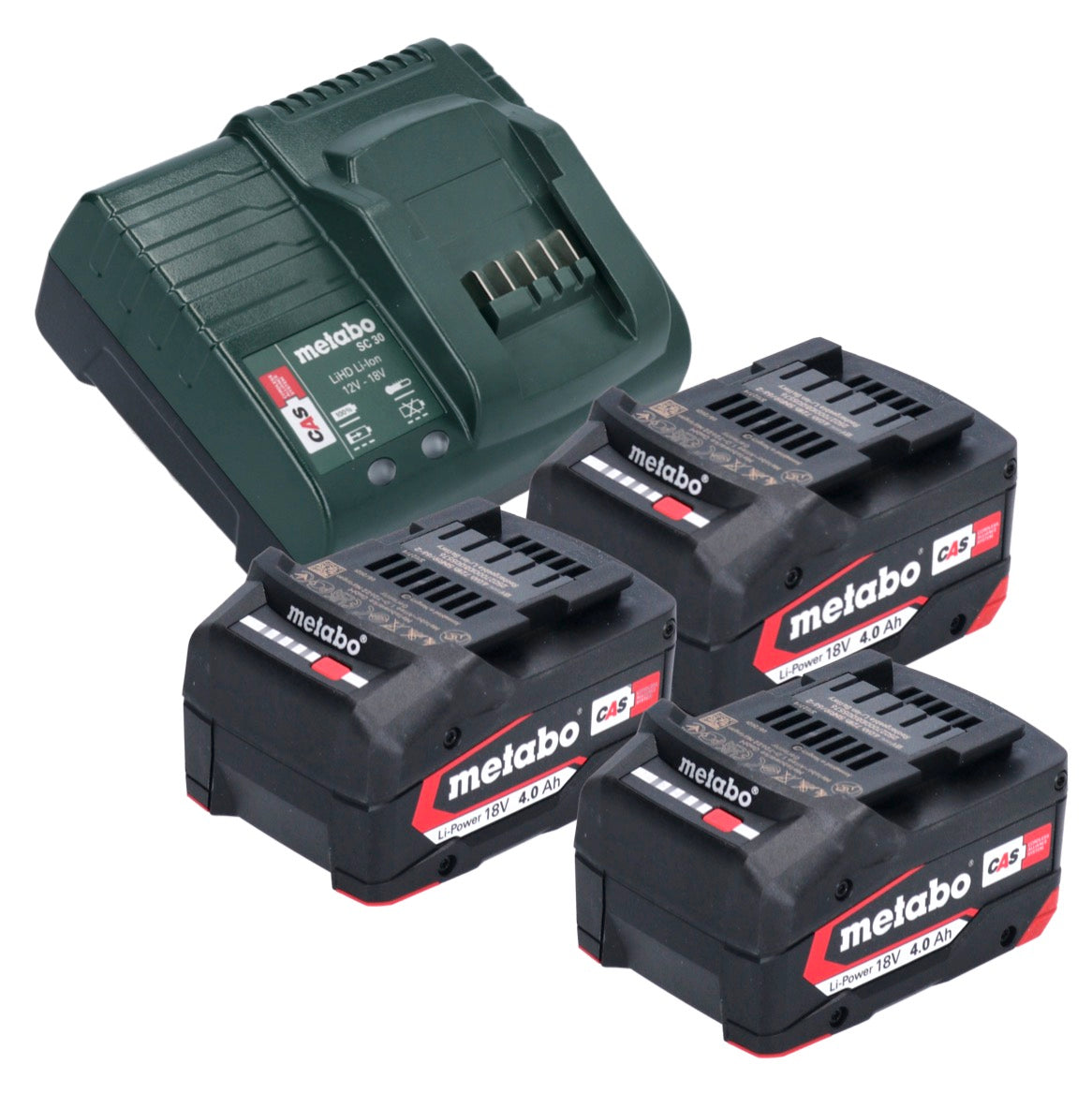 Metabo Basic Set 3x batteria Li-Power 18 V 4,0 Ah + caricatore Metabo SC 30 12 - 18 V
