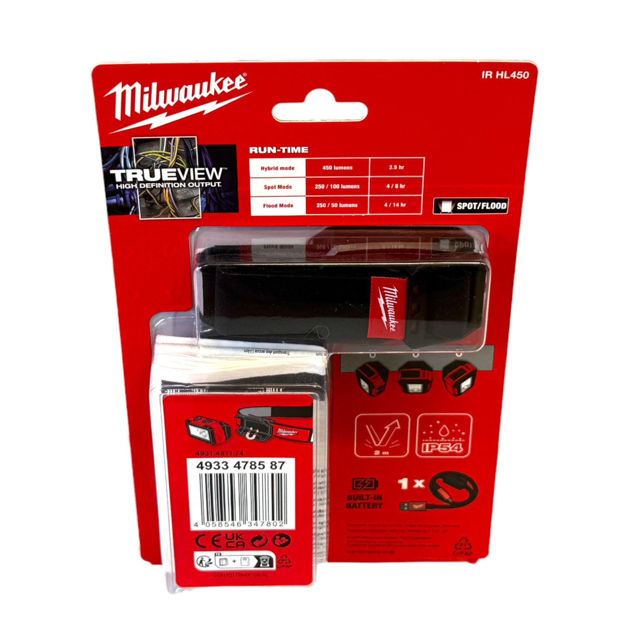 - 1x lampada frontale ricaricabile Milwaukee IR HL450 USB