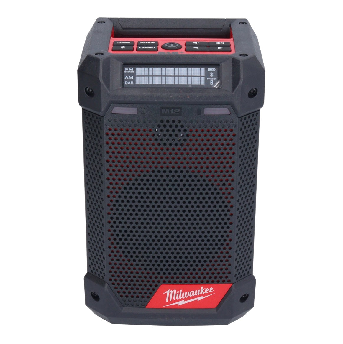 Der Milwaukee RCDBA+ ist ein tragbares Akku Radio, das Musik in einer unglaublichen Klangqualität wiedergibt. Dank des Premium-Lautsprechers und des Hochfrequenz-Hochtöners sowie dem digitalen Prozessor bietet er eine höchste Empfangsgenauigkeit, Signalklarheit und zusätzliche Informationen wie Song, Interpreten und die genaue Zeit. Durch die Wechselspannung von 12 V und der Eingebauten Ladefunktion können sowohl M12 Akkus als auch mobiles Endgeräte schnell und einfach aufgeladen werden. Mit der Empfangsreichweite von 30 m und dem digitalen Bluetooth-Empfänger kann Musik überall und jederzeit wiedergegeben werden. Mit seinem Gewicht von 1,9 kg (M12 B2) und der Schutzklasse IP-54 ist er zudem sehr robust und resistent gegen Staub und Spritzwasser. Der Milwaukee RCDBA+ ist der perfekte Begleiter für jede Outdoor-Aktivität und auf der Baustelle. Die Firma Milwaukee ist ein Hersteller für Werkzeuge aller Art, der sich vor allem durch seine lange Tradition und seine hohe Verarbeitungsqualität auszeichnet.