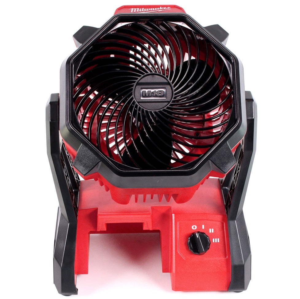Dieser praktische Ventilator aus dem Hause Milwaukee kann, je nach Bedarf, mit M18™ REDLITHIUM-ION™ Akkus oder mit 220-240 V Wechselspannung betrieben werden. Eine 3-stufige Luftvolumenstromeinstellung sort für die richtige Auswahlmöglichkeit der Luftstromstärke. Er ist optimiert für 3,6 x 4 m Räume. Der Kopf ist bis zu 120° vertikal rotierbar. Das Gerät ist kompakt designt mit integriertem Tragehandgriff - so kann das Gerät divers verwendet und flexibel transportiert werden. Es ist zu 100% systemkompatibel mit dem Milwaukee® M18 Produktprogramm.