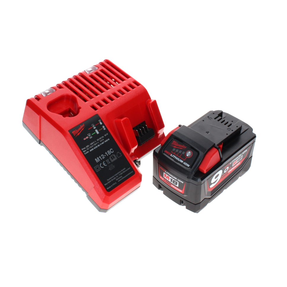- 1 x Milwaukee M18 B9 Akku 18 V / 9,0 Ah / 9000 mAh RED Li-Ion High Demand ( 4932451245 )