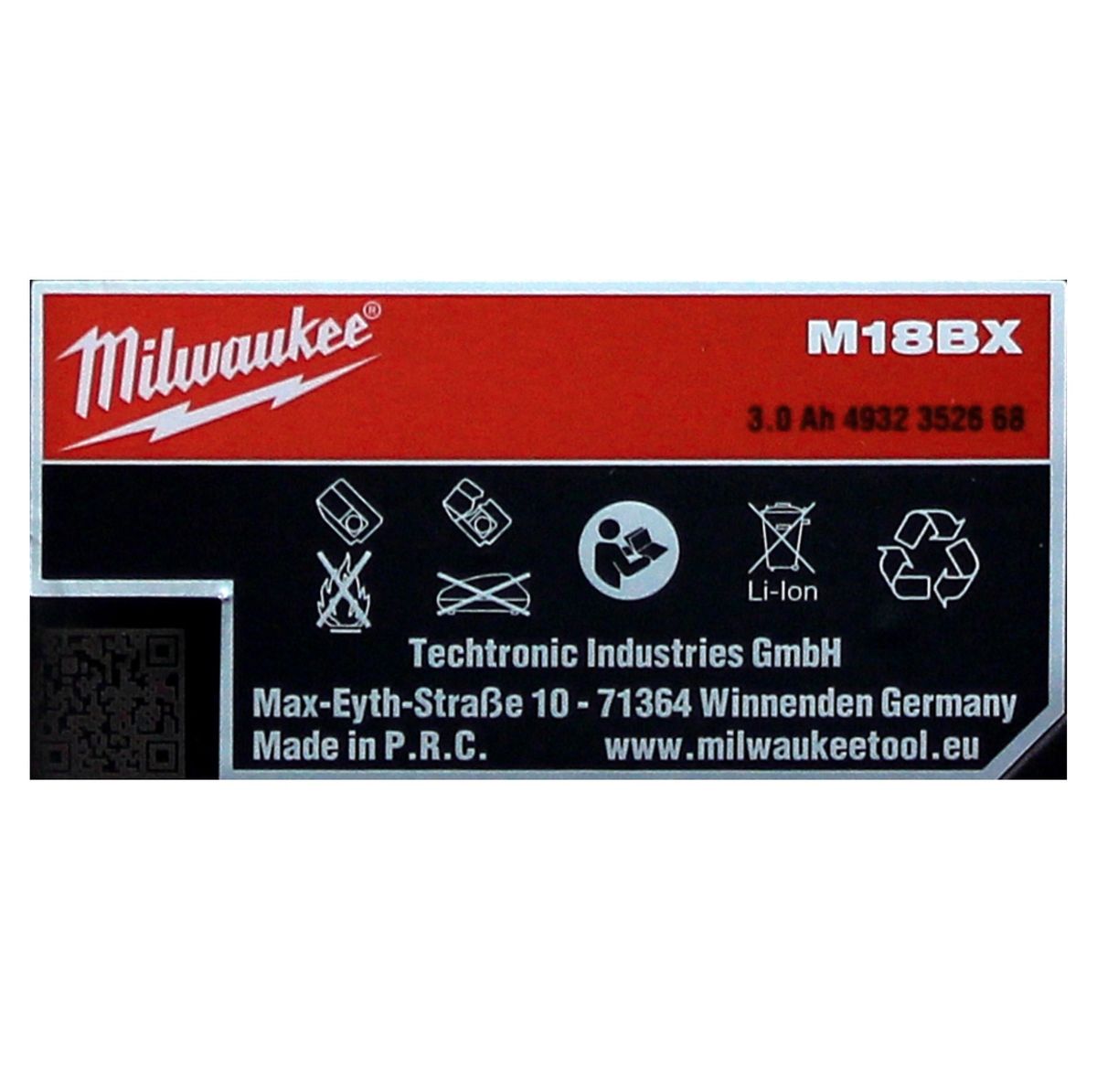- 2x Milwaukee M18 BX B3 Akku 18V / 3,0Ah / 3000mAh ( 4932352668 )