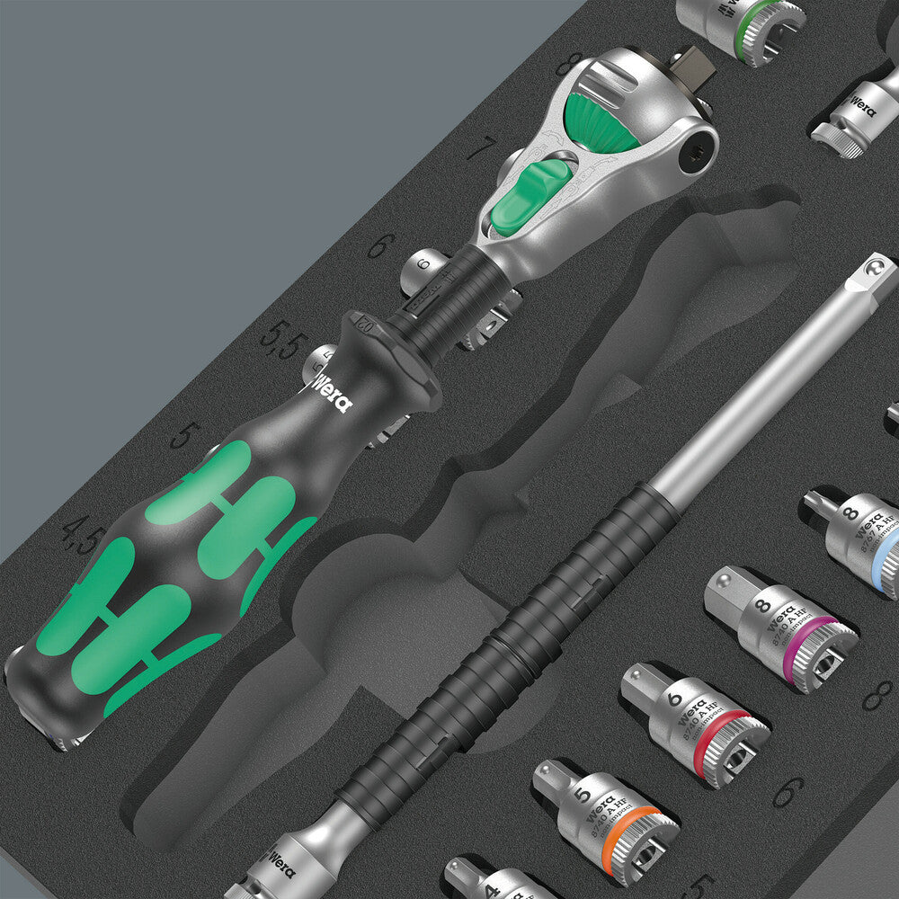 con inserto in schiuma e 8000 A Zyklop cricchetto 1/4″ set 1, 37 pezzi - 2 colori - idrorepellente e oleorepellente L x A x P (senza utensile) 172 x 30 x 392 mm L x A x P (con utensile) 172 x 40 x 392 mm