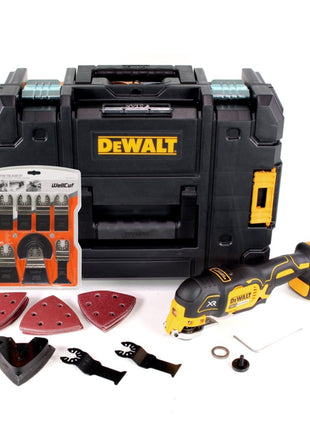 Multiutensile a batteria DeWalt DCS 355 NT 18 V Brushless + TSTAK + 29 accessori + 6x lame - senza batteria, senza caricabatterie