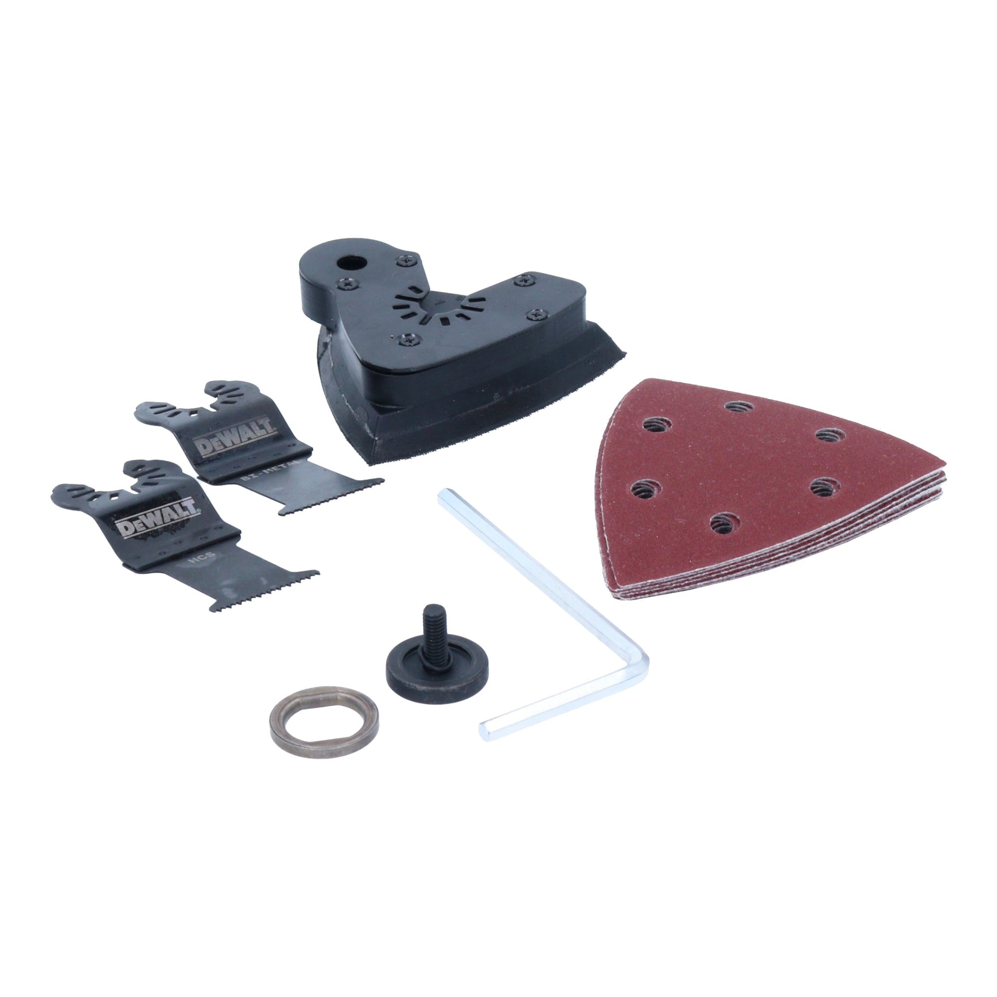 Con il DCS 355, DeWalt offre un potente multiutensile a batteria senza spazzole. Grazie allo speciale portautensili, gli accessori possono essere sostituiti in qualsiasi momento in modo rapido, semplice e senza attrezzi. La macchina offre un perfetto controllo dell'applicazione grazie all'interruttore regolabile con precisione e alla doppia posizione dell'impugnatura. Una lampada da lavoro a LED è fissata sulla punta dell'utensile per illuminare le aree di lavoro più buie e consentire così risultati precisi anche in luoghi poco illuminati. Il motore brushless garantisce da un lato un design più compatto e dall'altro una maggiore durata dell'utensile, in quanto l'eliminazione delle spazzole di carbone rende superflua la parte di usura principale. DeWalt è un produttore leader di elettroutensili che si distingue soprattutto per la sua lunga tradizione e l'alta qualità della lavorazione.