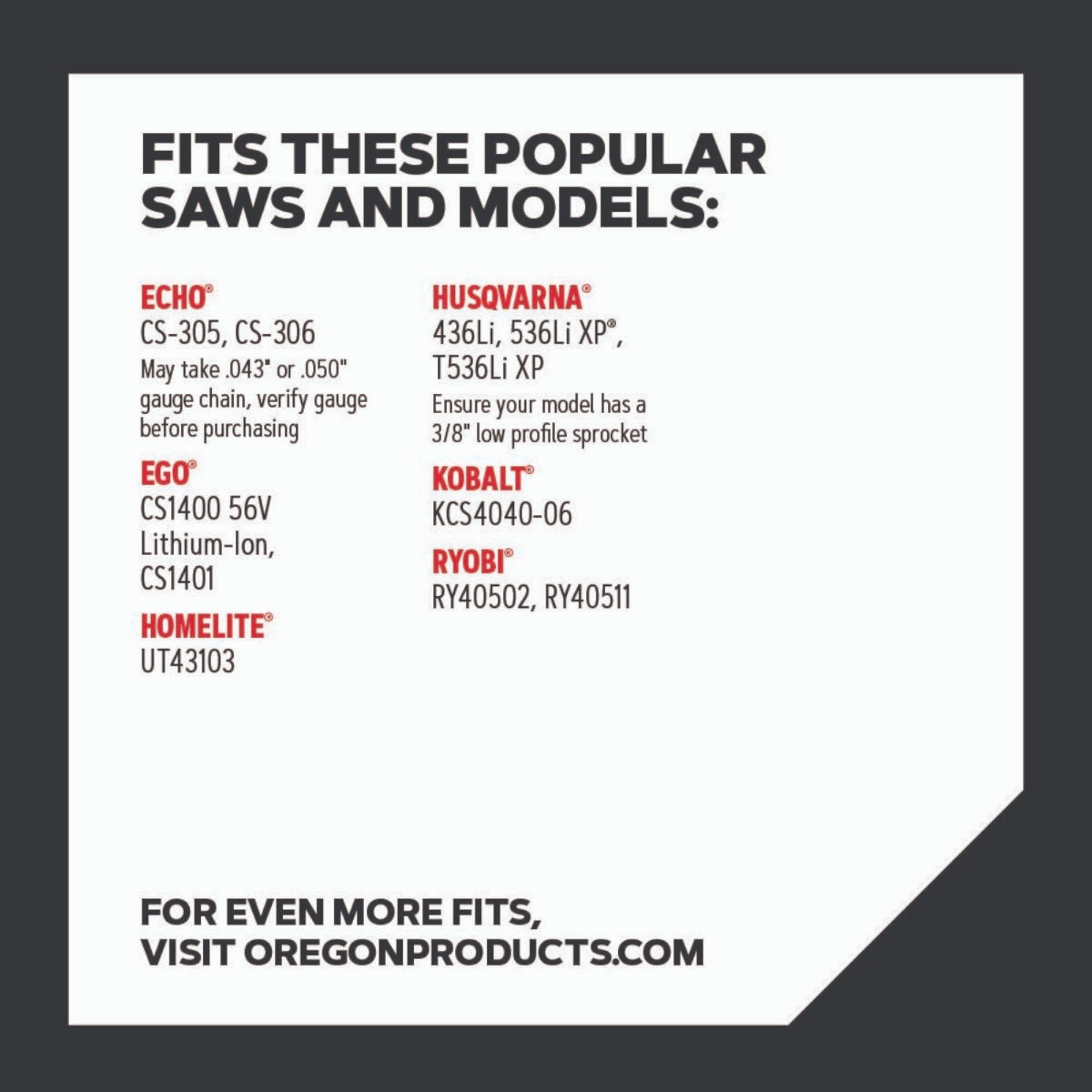 La catena Oregon 90PX è la scelta perfetta per le motoseghe più piccole e di bassa potenza e offre una straordinaria efficienza della catena. È stata progettata specificamente per i paesaggisti e i proprietari di case che necessitano di una catena affidabile e potente. Il design Low Profile™ da 3/8" e il sistema di taglio stretto con un taglio da 1,1 mm (.043") riducono il consumo di energia e aumentano l'efficienza, in quanto la catena richiede meno potenza dalla motosega rispetto ai sistemi di taglio convenzionali. Con 52 maglie di trasmissione e una capacità massima di taglio di 42 cm³, la catena è ideale per i piccoli lavori in giardino o nella proprietà. Il LubriTec™ mantiene la catena e la barra di guida sempre lubrificate, riduce l'attrito e garantisce una maggiore durata della catena. L'informazione di limatura sulla parte superiore della catena facilita l'affilatura precisa, in modo che le prestazioni di taglio rimangano sempre ai massimi livelli. Grazie al basso contraccolpo, la catena Oregon 90PX offre un elevato livello di sicurezza, soprattutto per gli utenti che eseguono regolarmente piccoli lavori di taglio. Utilizzare sempre questa catena con barre che supportano un taglio stretto per garantire le migliori prestazioni e la massima sicurezza.