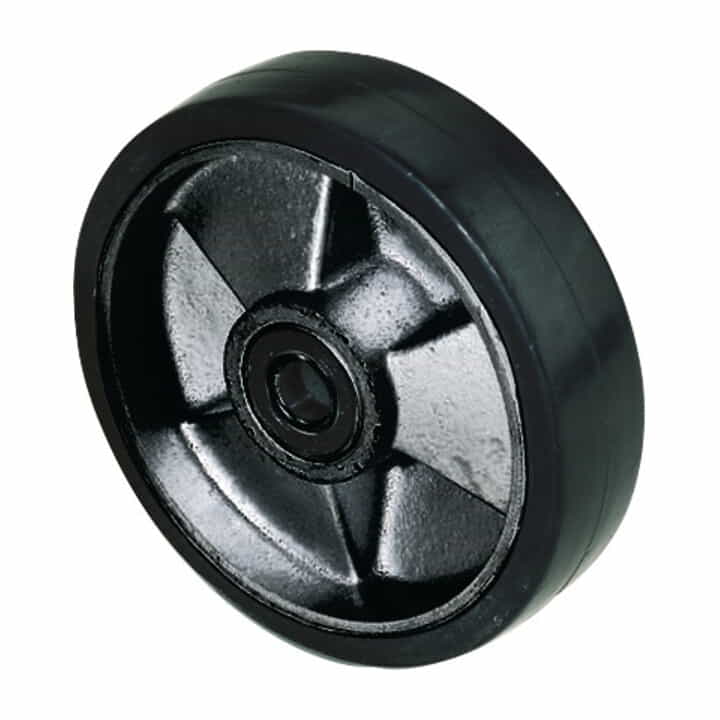 Vollgummibandage auf Aluguss-Felge · mit Kugellager · für hohe Belastbarkeit · geräuscharmer Lauf