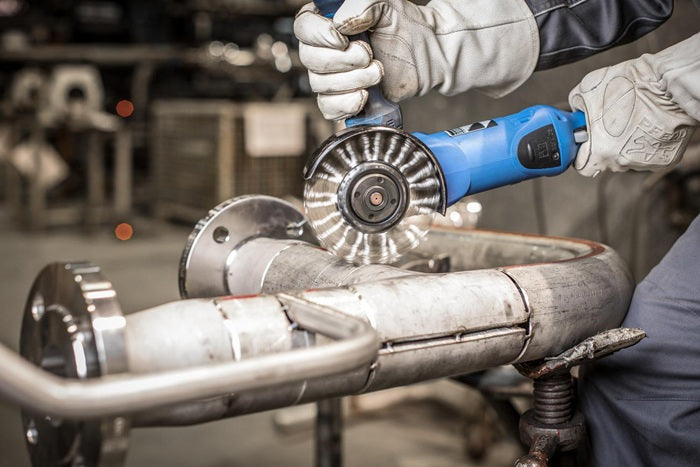 - Attività di lavorazione: Sbavatura, lavorazione delle saldature a filetto, lavorazione dei cordoni di saldatura, lavorazione dei cordoni di radice, sverniciatura, rimozione degli strati di ossido, rimozione dell'appannamento, decalcificazione, deragnatura, pulizia