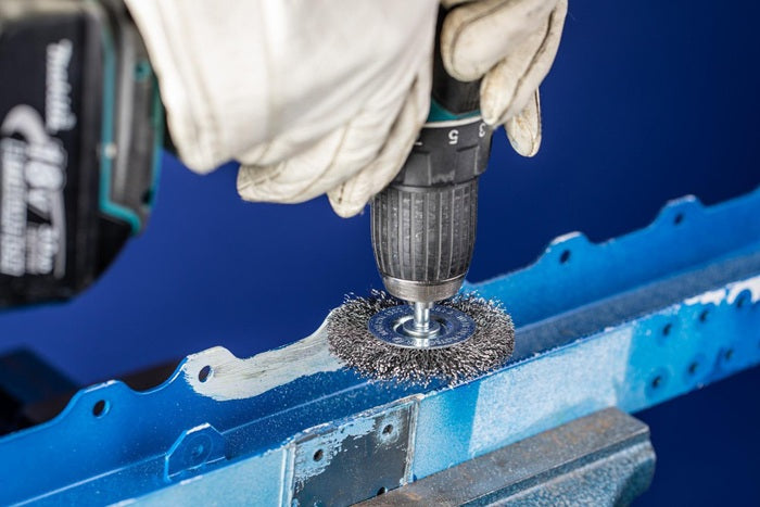 per la pulizia, la depolverizzazione, la levigatura, la pulizia dei cordoni di saldatura, la sbavatura leggera e la rimozione di corrosione e vernice - ottima resistenza alla corrosione con una durata ottimale - INOX trim blu per l'uso su tutti gli acciai inossidabili (INOX), come il V4A. Il filo di acciaio inossidabile (INOX) resiste a temperature fino a 450 °C - Gambo Ø 6 mm
