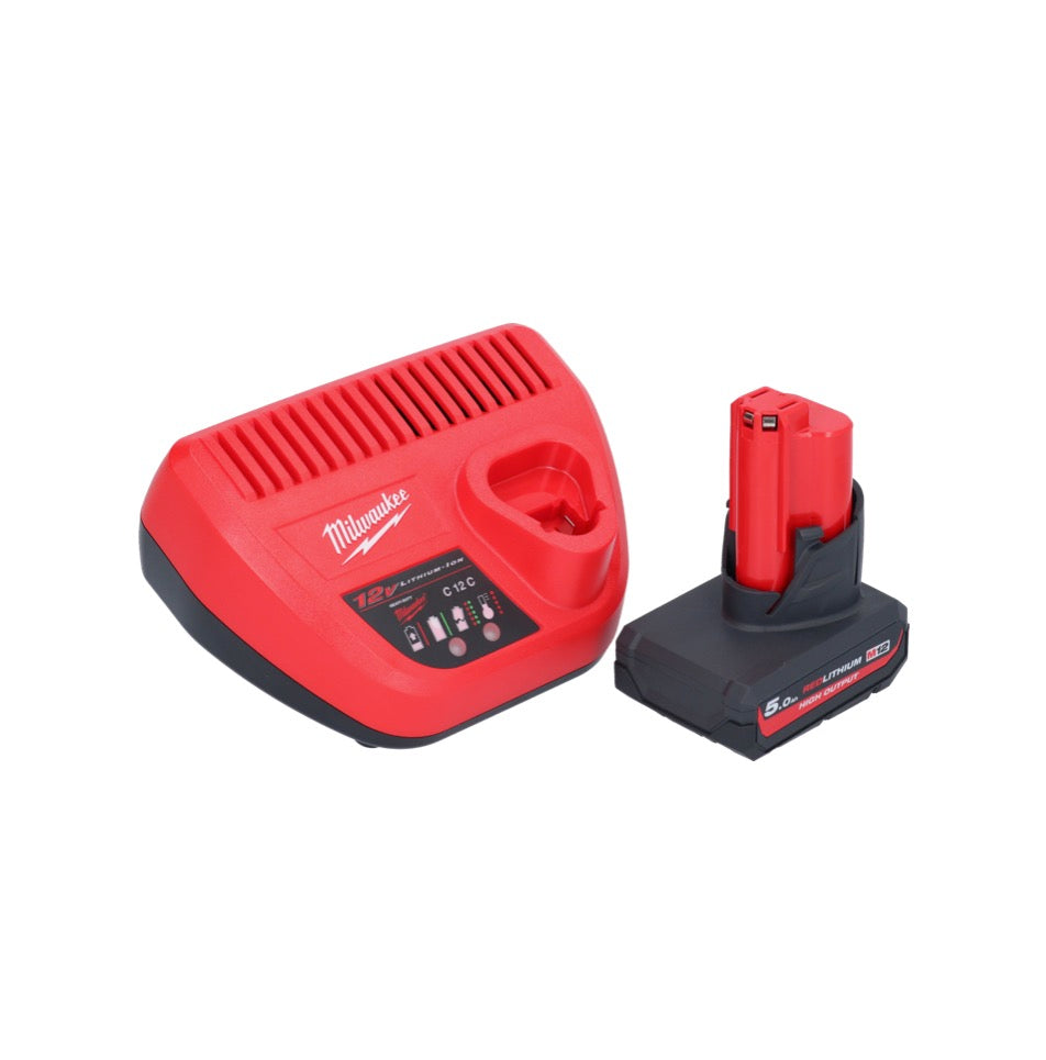 Pinza a batteria Milwaukee M12 BCST-501 12 V 19 x 25,4 mm + 1x batteria ricaricabile 5,0 Ah + caricatore