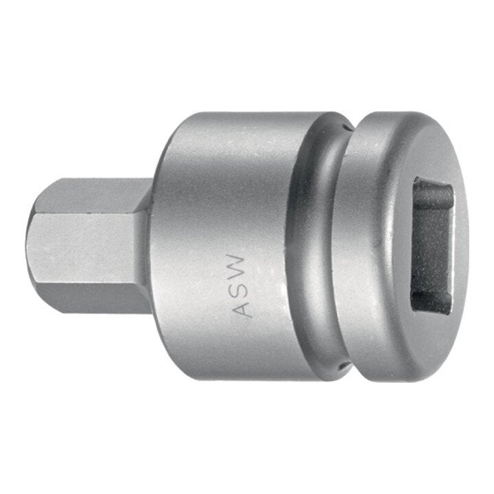 Attacco quadro 20 mm (3/4″) DIN 3121 - forma H 20 - con foro perno e scanalatura ad anello Uscita: per viti con profilo esagonale - acciaio speciale - superficie grigio acciaio - oliato - per i carichi più gravosi su avvitatori ad impulsi elettrici e/o pneumatici