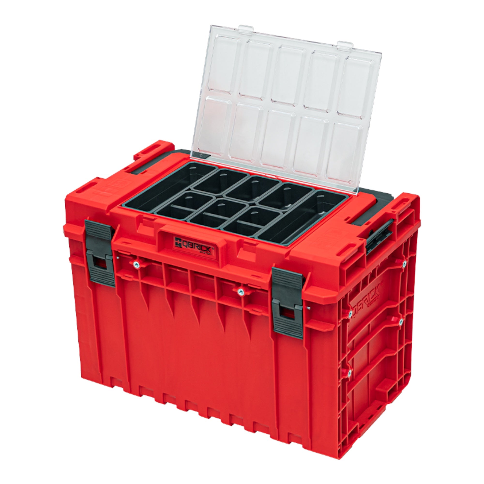 ONE 450 è una valigia portautensili con una capacità molto ampia di 52 litri. Ciò consente di contenere utensili elettrici e manuali di grandi dimensioni. Due scomparti regolabili consentono di organizzare l'interno della cassetta. Ogni cassetta è dotata di una guarnizione flessibile che garantisce una protezione totale contro l'ingresso di polvere e acqua (IP66). Di serie, è dotata di due divisori regolabili e di due scomparti per organizzare perfettamente lo spazio all'interno della cassetta. Il nuovo coperchio EXPERT offre nuove opzioni di stoccaggio. Dotato di 8 secchi di diverse dimensioni, consente di riporre accessori da officina piccoli e lunghi. La lunga maniglia in alluminio garantisce un'elevata ergonomia durante il trasporto. La versione 2.0 della linea di prodotti ONE è una nuova generazione di cassette portautensili e organizer dal design rinforzato. Adattando gli alloggiamenti a inserti filettati M8, il sistema può essere personalizzato in base alle esigenze dell'utente. La versione personalizzata di questo modello di cassetta è dotata di dieci inserti filettati M8 che consentono la personalizzazione da parte dell'utente. RED ULTRA HD è un'edizione speciale dei prodotti Qbrick System ONE realizzati in plastica ultraresistente, caratterizzata da un'eccezionale resistenza ai danni meccanici. I test di impatto effettuati confermano la sua eccezionale durata, anche in condizioni inferiori a 0 °C.