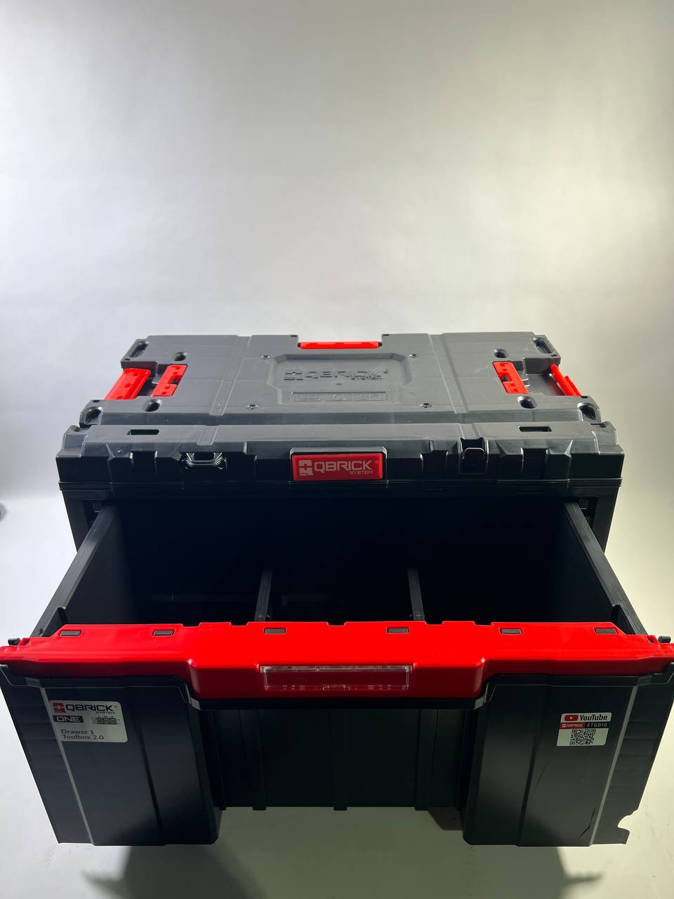 La cassetta per attrezzi Qbrick System ONE Drawer 1 è una cassetta per attrezzi modulare e molto spaziosa. È dotata di un cassetto che scorre su guide metalliche. Un pratico pulsante permette di accedere facilmente al suo contenuto. Il cassetto è dotato di due scomparti in ABS che possono essere regolati in 5 posizioni, creando pratici scomparti per riporre gli utensili. I connettori laterali in poliammide consentono di collegarsi facilmente agli altri moduli della linea ONE. Con il coperchio Vario è possibile collegare il cassetto al sistema PRO. Le comode maniglie laterali nel corpo garantiscono la facilità di trasporto del modulo. L'utensile è dotato di uno spazio per l'etichetta, protetto da una copertura in policarbonato. Le aperture adatte al montaggio di inserti filettati M8 consentono di personalizzare il sistema in base alle esigenze dell'utente. Sono inoltre disponibili opzioni per appendere il modulo alla parete sul retro della cassa. Per proteggere la valigetta dal furto del contenuto, viene utilizzato un chiavistello in acciaio adatto all'uso di un lucchetto. Qbrick System ONE Drawer non è compatibile con ONE Transport Platform 1.0. ONE Transport Platform 2.0 Allterain e Workshop sono dedicati a loro.