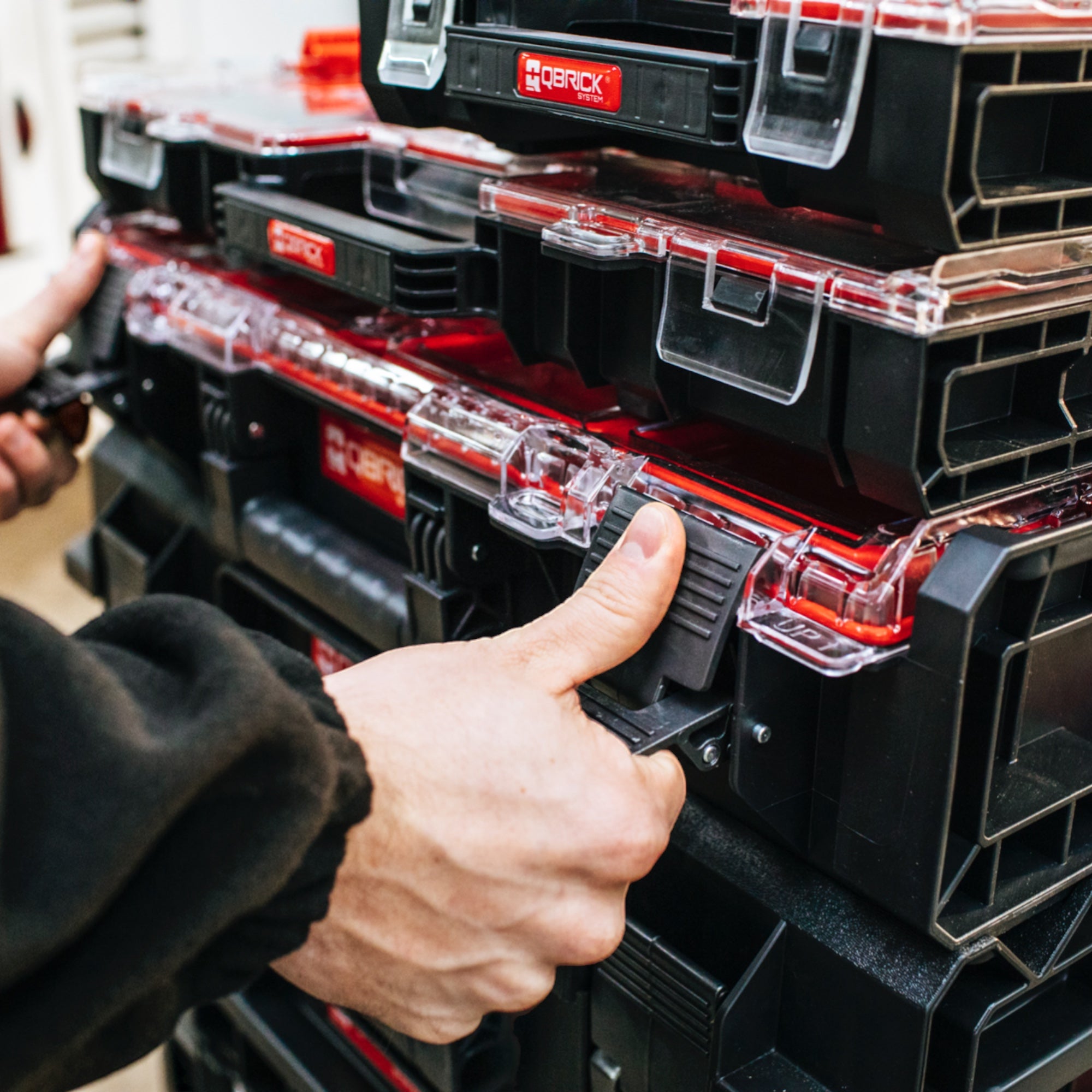 Il Qbrick System ONE Organiser 2XL è il modello più grande e più alto della famiglia di Organizer modulari ONE, che possono essere combinati tra loro, ma anche con tutti i box della linea ONE. Come l'Organize+ XL, è l'anello di congiunzione tra il cofanetto e i modelli di Organizer più piccoli (L, M e M Plus). L'Organize+ è dotato di quattro nuovi secchi, ognuno dei quali misura più di 30 cm. Ognuno di essi è inoltre dotato di 3 divisori regolabili che consentono di organizzare l'interno a piacimento. L'altezza di ogni secchio è di 13,5 cm. Nell'ambito del lancio di questo modello di organizzatore, all'interno dell'organizzatore QS ONE Connect sono stati montati degli adattatori (2 pezzi) che consentono di fissare in modo stabile e sicuro gli Organizer XL e 2XL e tutti gli altri box della linea ONE in posizione verticale (pareti dell'officina, autobus) con una portata massima di 15 kg o in posizione orizzontale (pavimento dell'officina/scaffale, autobus) con una portata massima di 50 kg. La versione 2.0 della linea di prodotti Qbrick System ONE è una nuova generazione di cassette per attrezzi e Organizer con un design rinforzato. Adattando gli alloggiamenti agli inserti filettati M8, il sistema può essere personalizzato in base alle esigenze dell'utente.