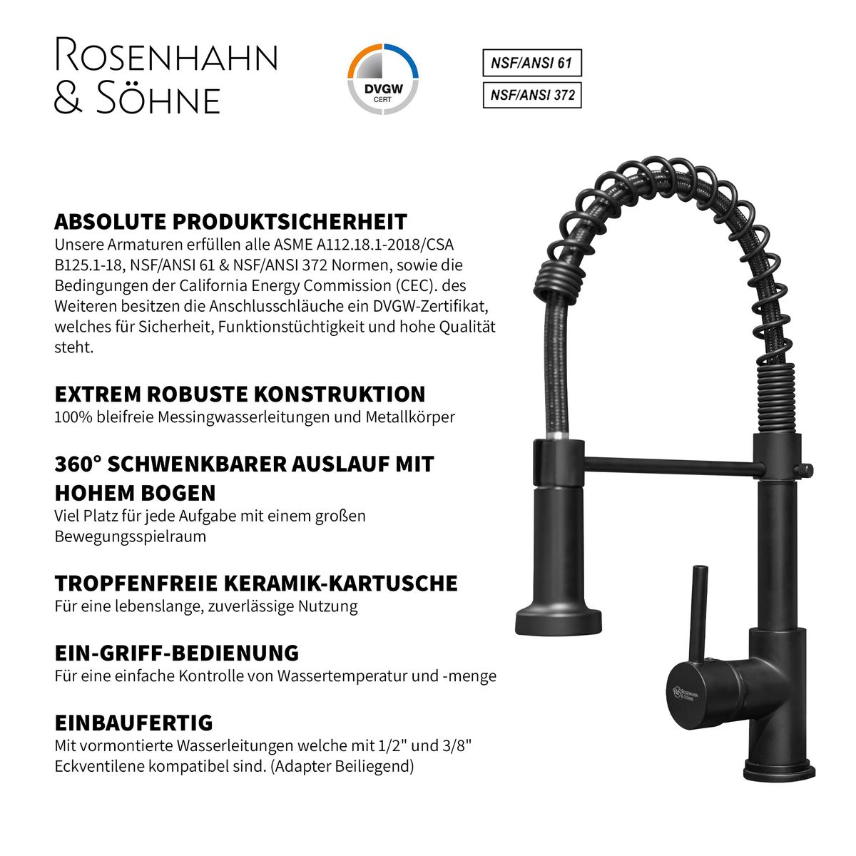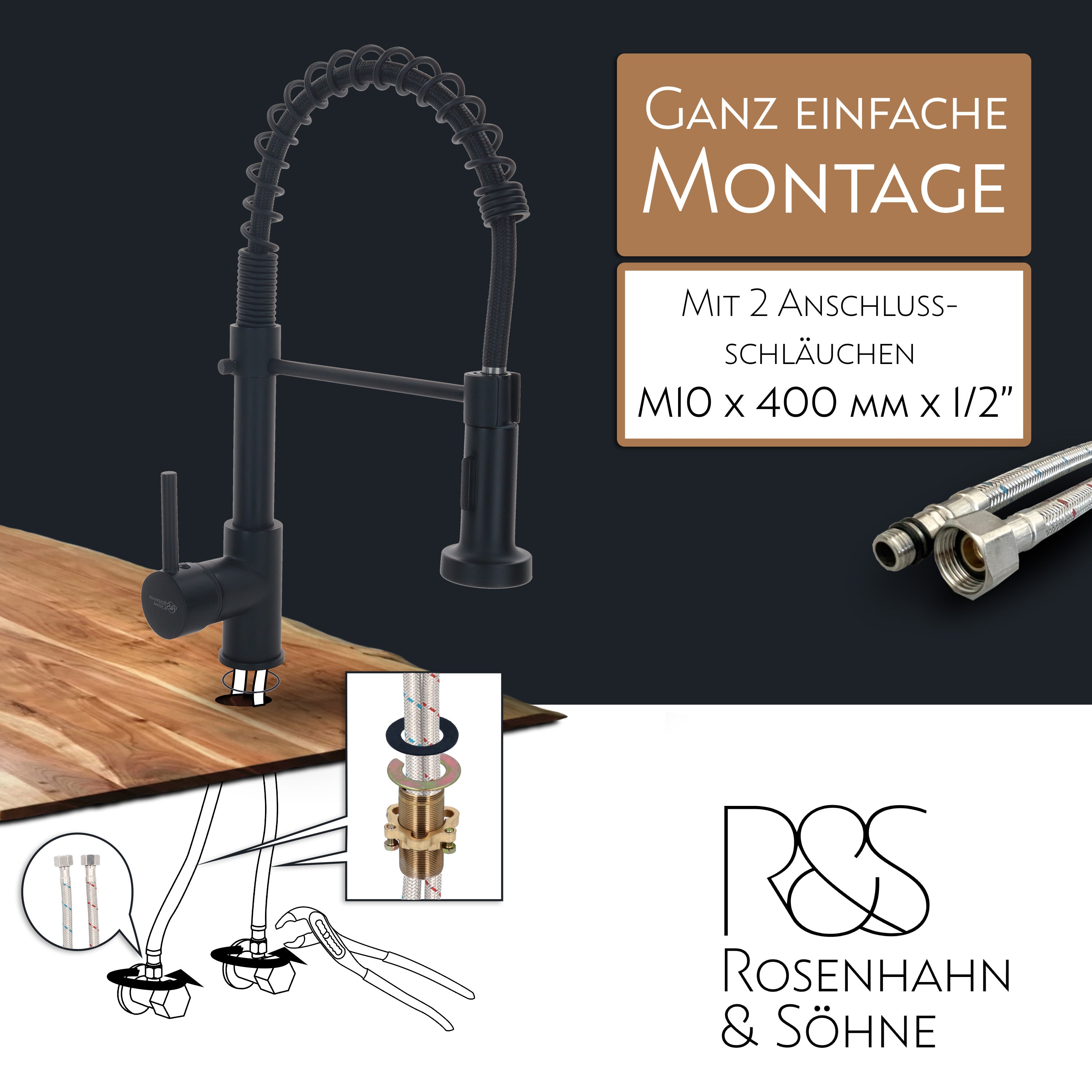 Rosenhahn & Söhne Sylt 200 Rubinetto da cucina con doccetta in nero opaco