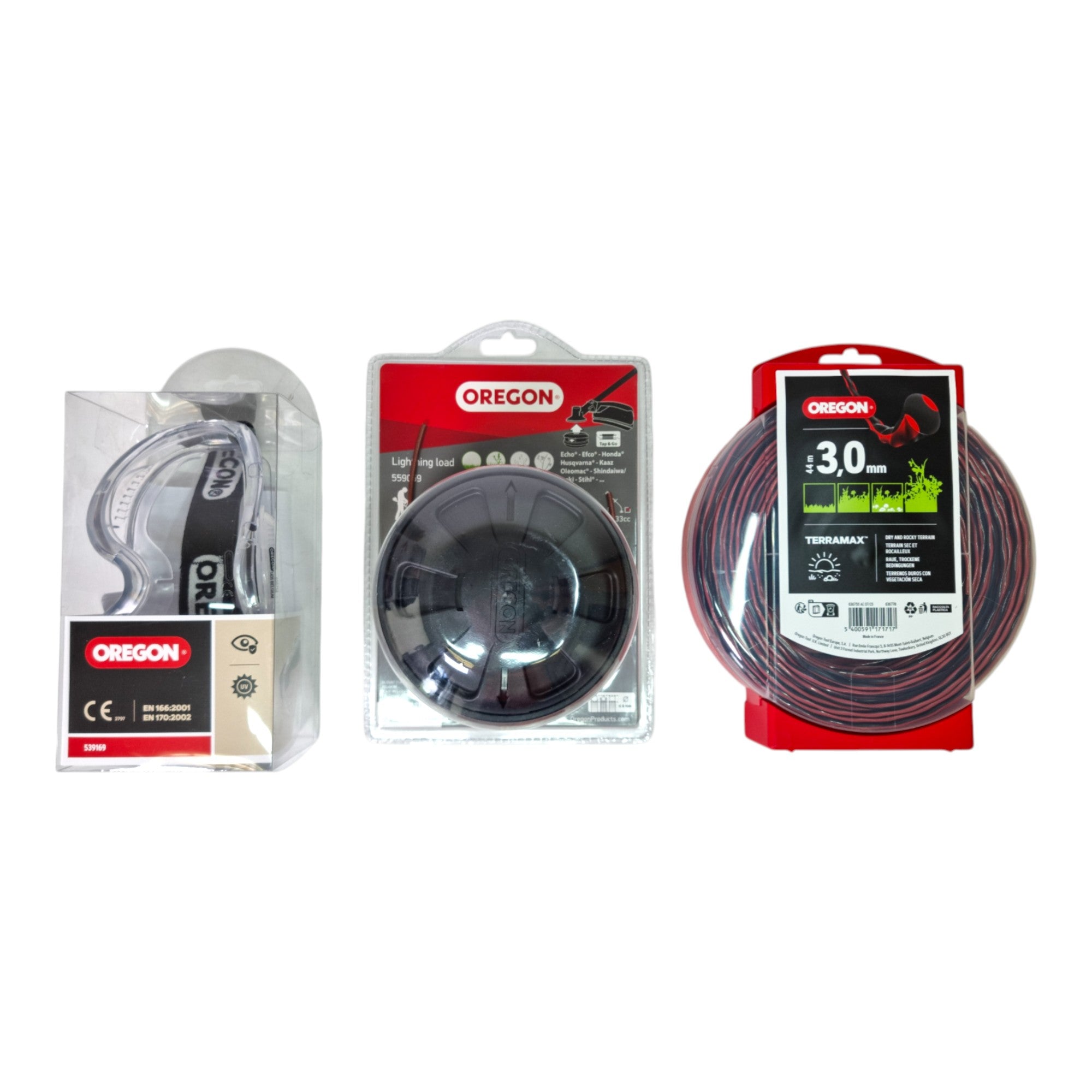 Set da giardino Oregon Pro con testa di taglio + filo + occhiali protettivi (646569) per decespugliatori da 33 cm³